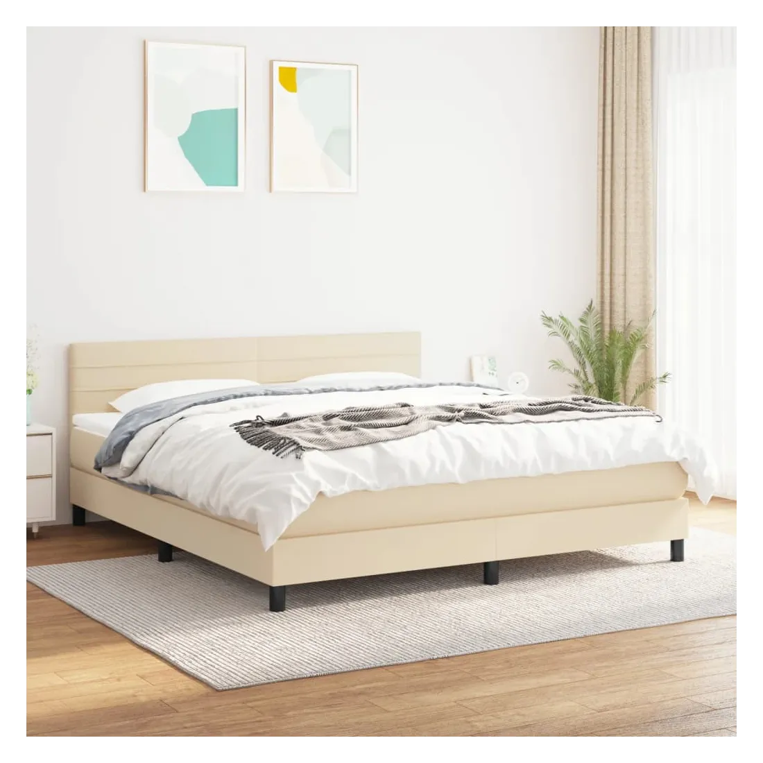 Sommier à lattes de lit avec matelas Crème 180x200 cm Tissu