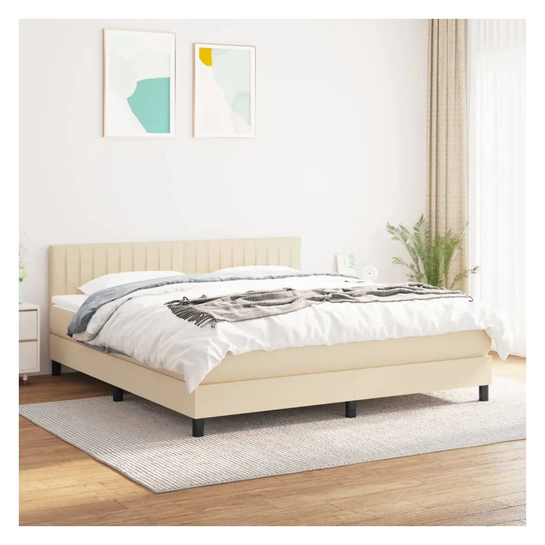 Sommier à lattes de lit avec matelas Crème 160x200 cm Tissu