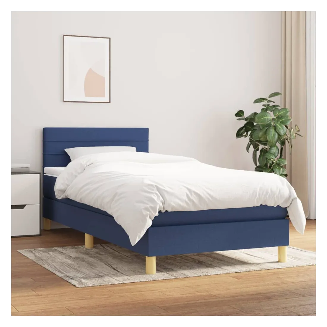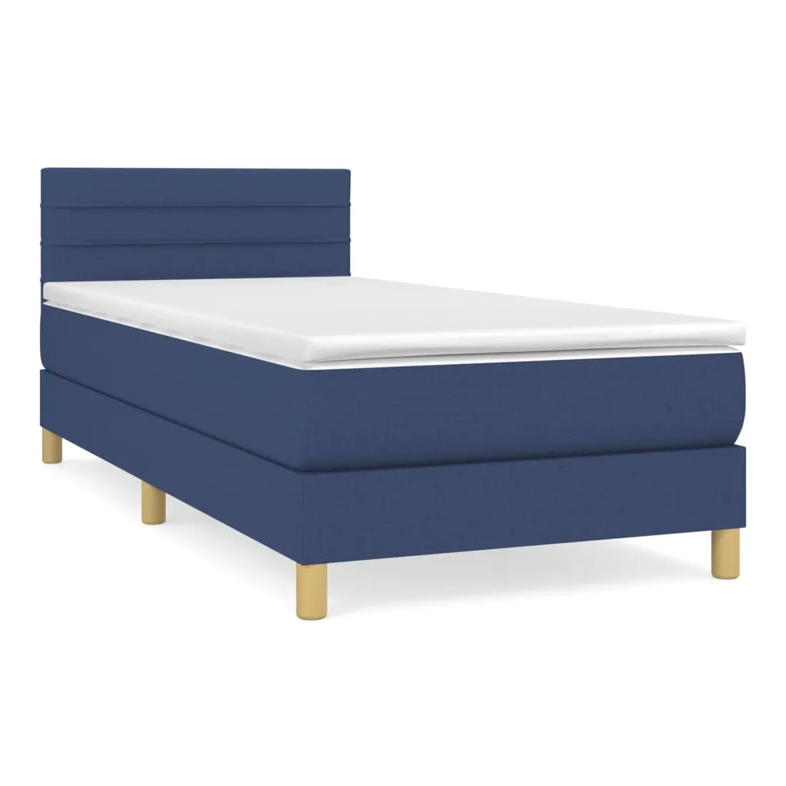 Sommier à lattes de lit avec matelas Bleu 90x200 cm Tissu