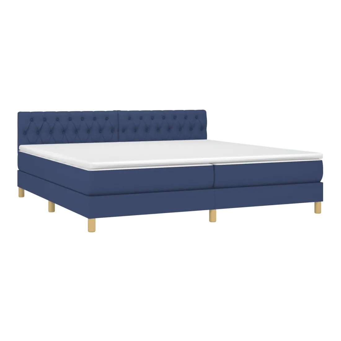 Sommier à lattes de lit avec matelas Bleu 200x200 cm Tissu