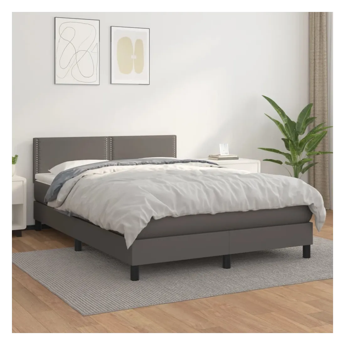 Sommier à lattes de lit avec matelas Gris 140x200 cm Similicuir