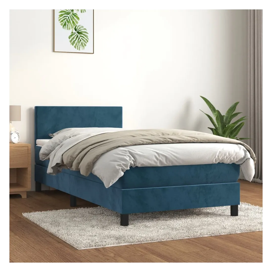 Sommier à lattes de lit avec matelas Bleu foncé 90x190 cm