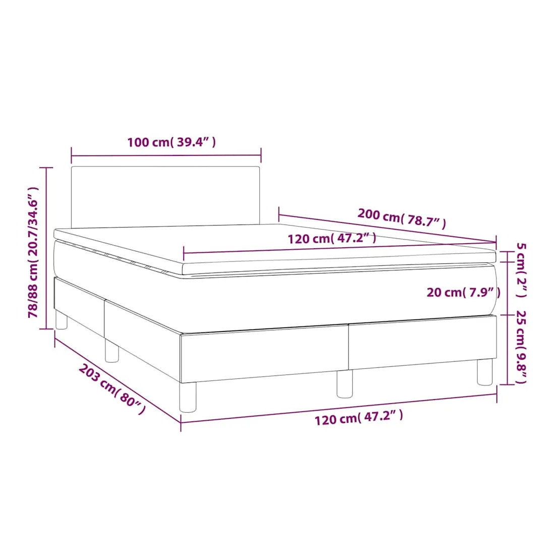 • Dimensions : 120 x 200 x 20 cm (l x L x H)