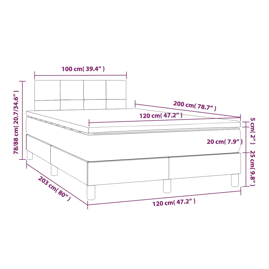 • Dimensions : 120 x 200 x 20 cm (l x L x H)