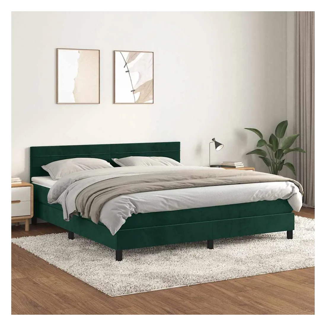 Sommier à lattes de lit et matelas Vert foncé 160x200cm Velours