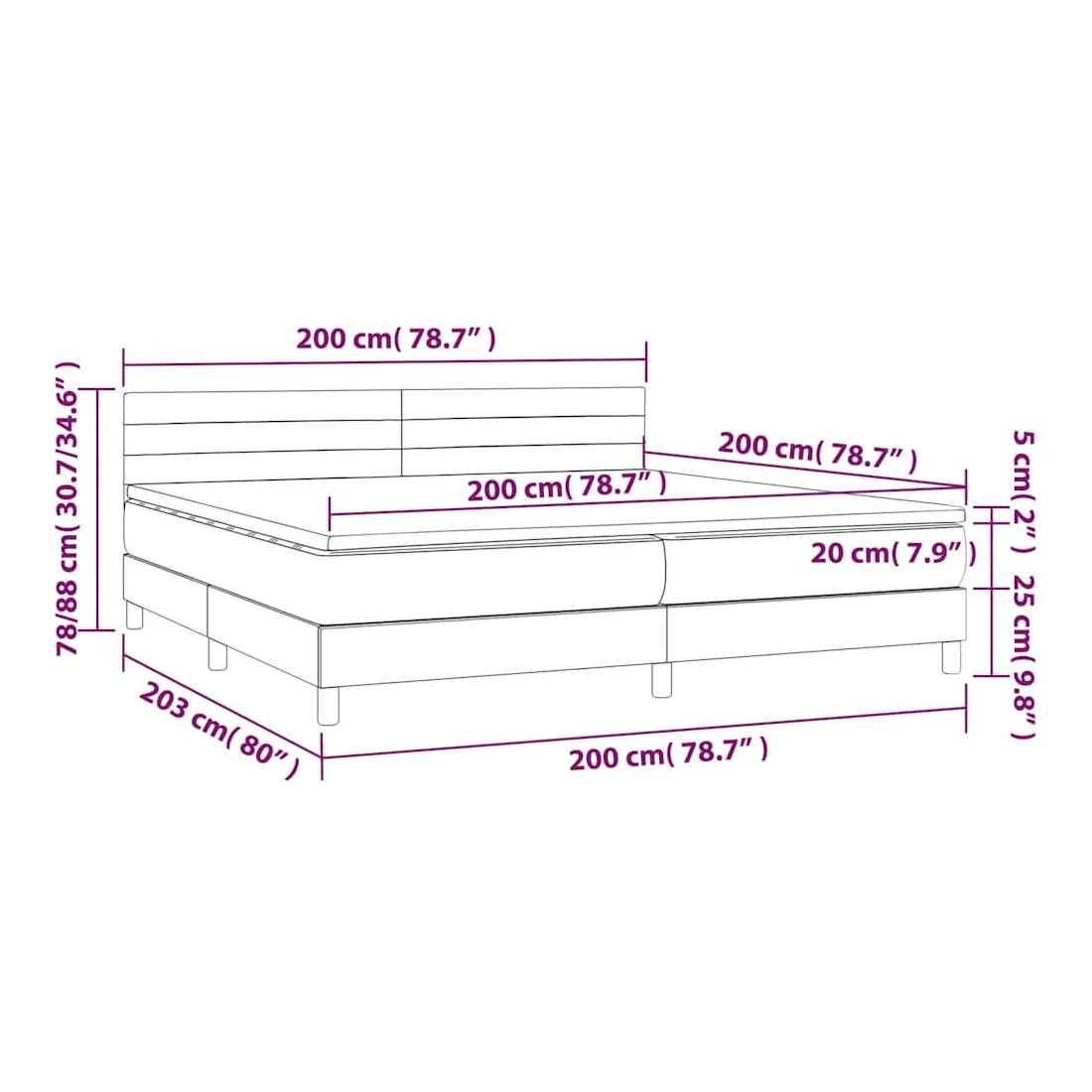 Utilisez ce lit à sommier pour profiter d'une nuit de sommeil réparatrice ! Il vous offre une relaxation maximale et un sommeil agréable. Velours doux : le velours est un tissu doux et luxueux qui se reconnaît à son tas dense de fibres uniformément coupées qui ont une touche lisse. Le tissu en velours présente un toucher doux distinctif, ce qui le rend confortable au toucher.Tête de lit pratique : la tête de lit est réglable en hauteur selon vos préférences. La tête de lit vous offre un excellent soutien du dos lorsque vous êtes assis dans votre lit pour lire ou regarder la télévision.Matelas à ressorts ensachés : le ressort ensaché individuel intégré est connu pour sa très haute qualité tout en assurant un haut niveau de durabilité et d'adaptabilité. Il peut absorber efficacement le bruit et les chocs causés par les sauts et les rotations.Support moyen-dur : ce matelas de lit offre une stabilité accrue et juste le niveau de fermeté sans sacrifier le confort. Il est donc idéal pour les personnes qui dorment sur le dos ou sur le ventre.Protège-matelas doux pour la peau : le protège-matelas est recouvert d'un tissu résistant et doux pour la peau, ce qui le rend souple et confortable. Remarque :Pour des raisons d'hygiène, le matelas ne peut pas être retourné si l'emballage est retiré ou ouvert.Chaque produit est livré avec un manuel de montage dans la boîte pour un montage facile.