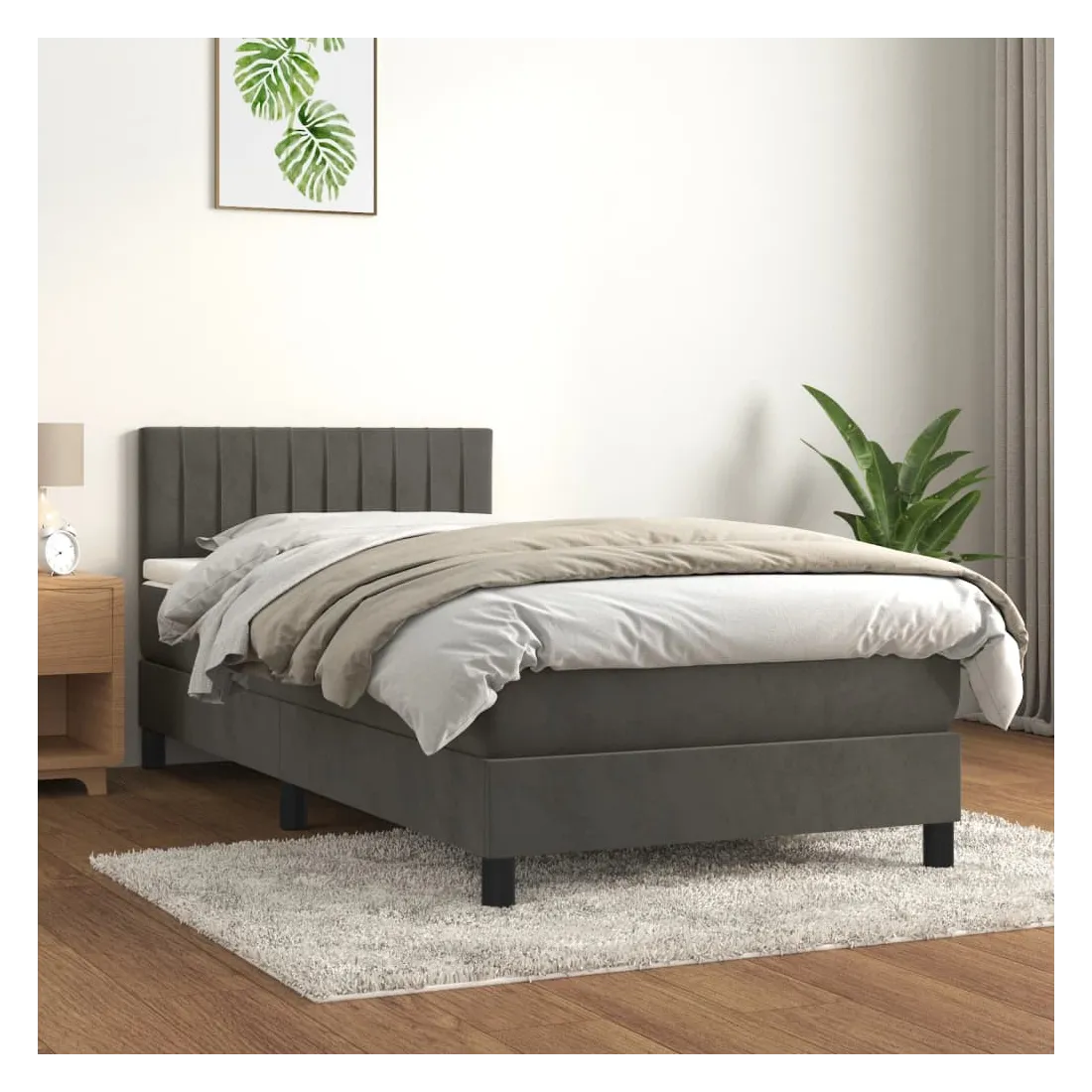 Sommier à lattes de lit et matelas Gris foncé 90x200 cm Velours
