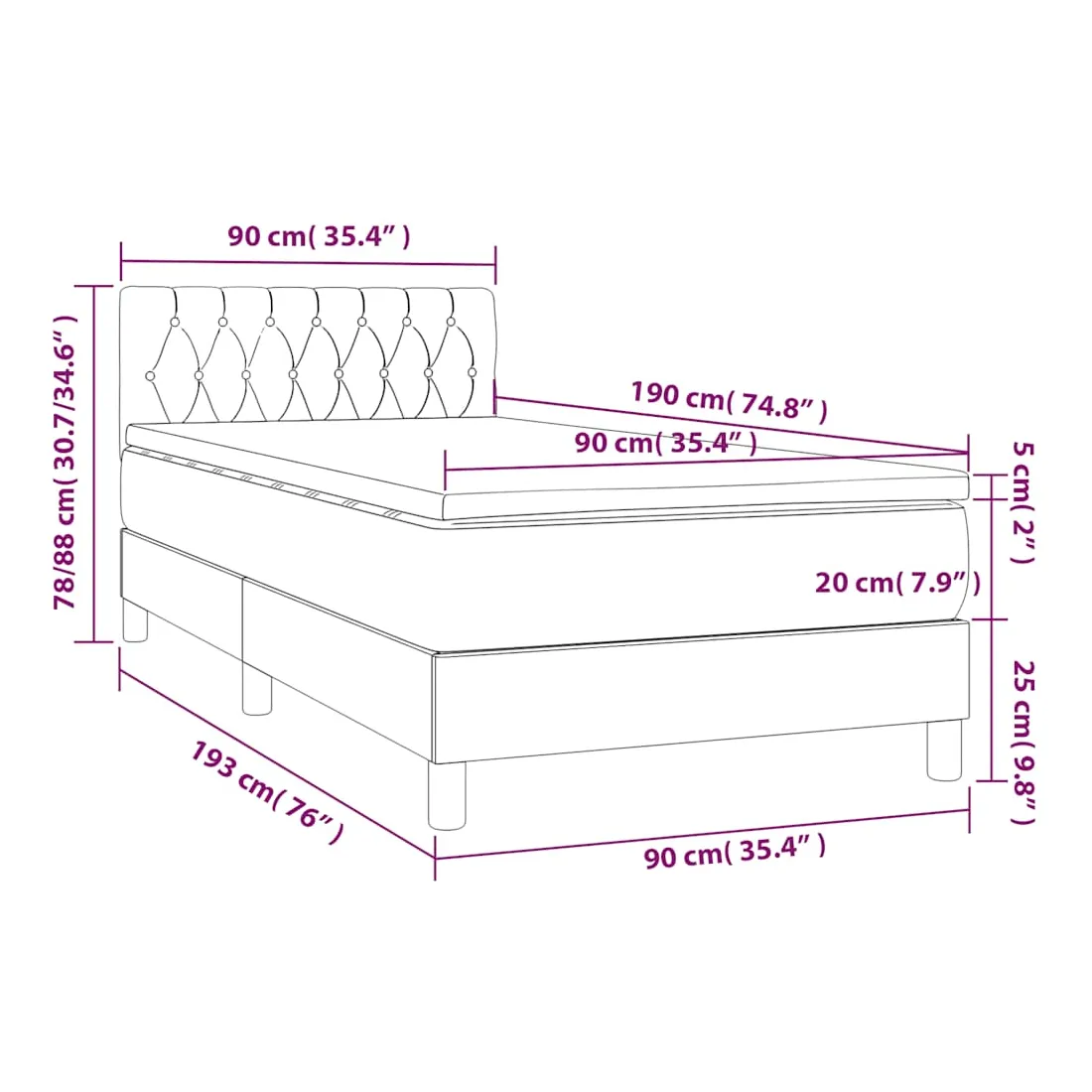 • Dimensions : 90 x 190 x 20 cm (l x L x H)
