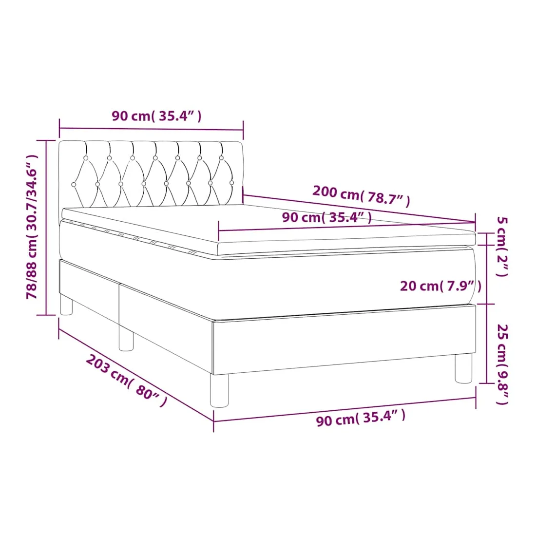 - Dimensions : 90 x 200 x 20 cm (l x L x H)