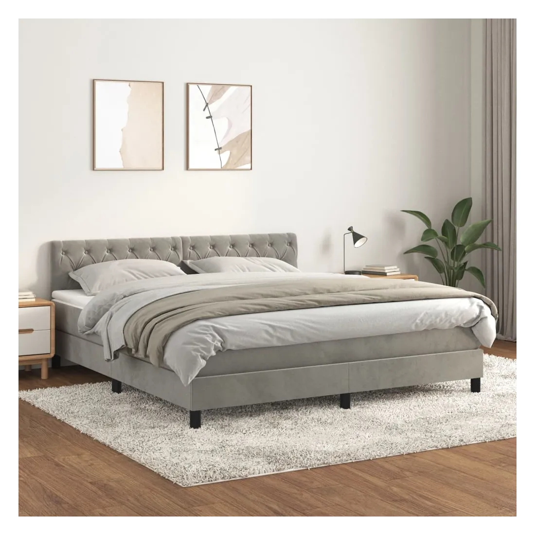 Sommier à lattes de lit et matelas Gris clair 160x200cm Velours
