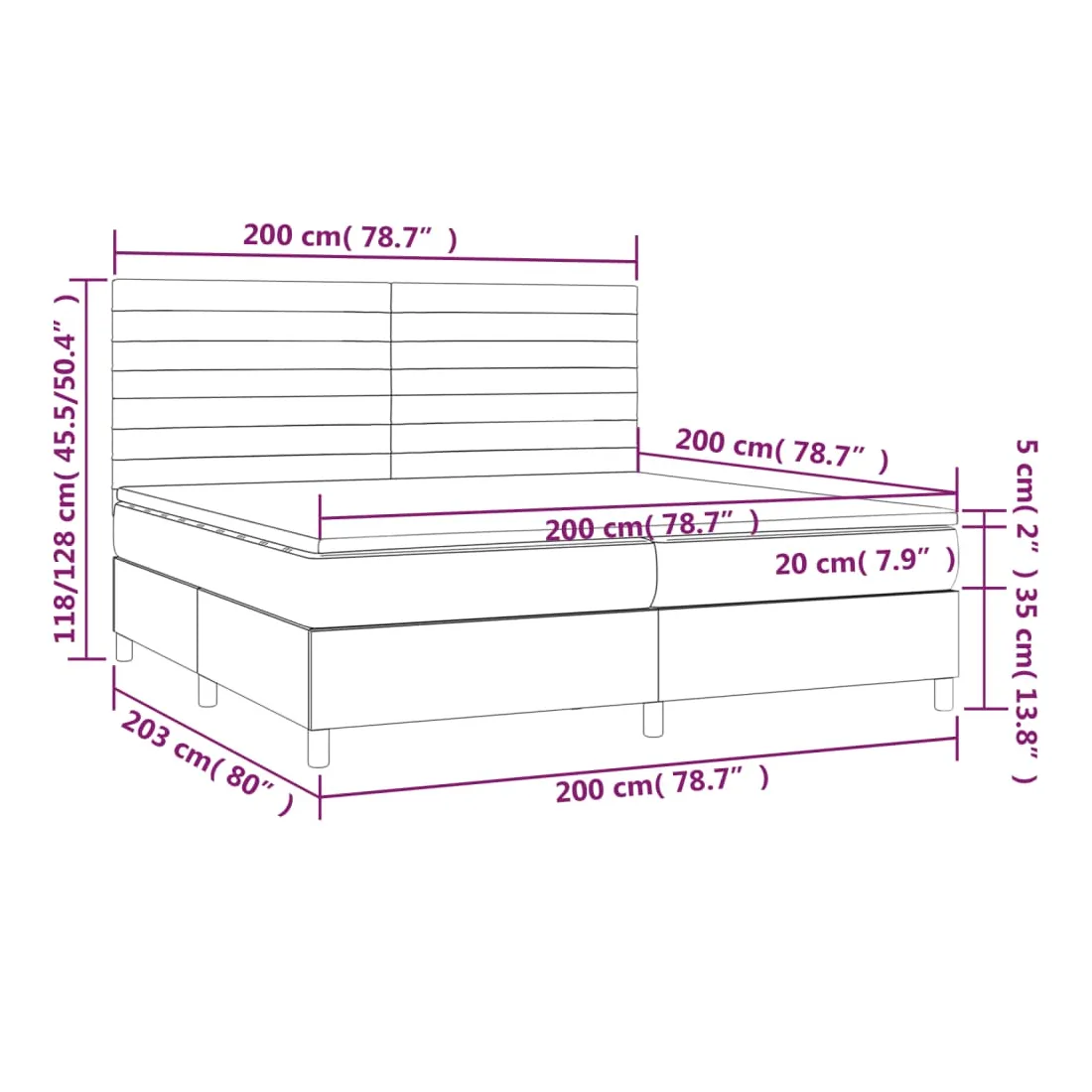 • Dimensions: 203 x 200 x 118/128 cm (L x l x H)