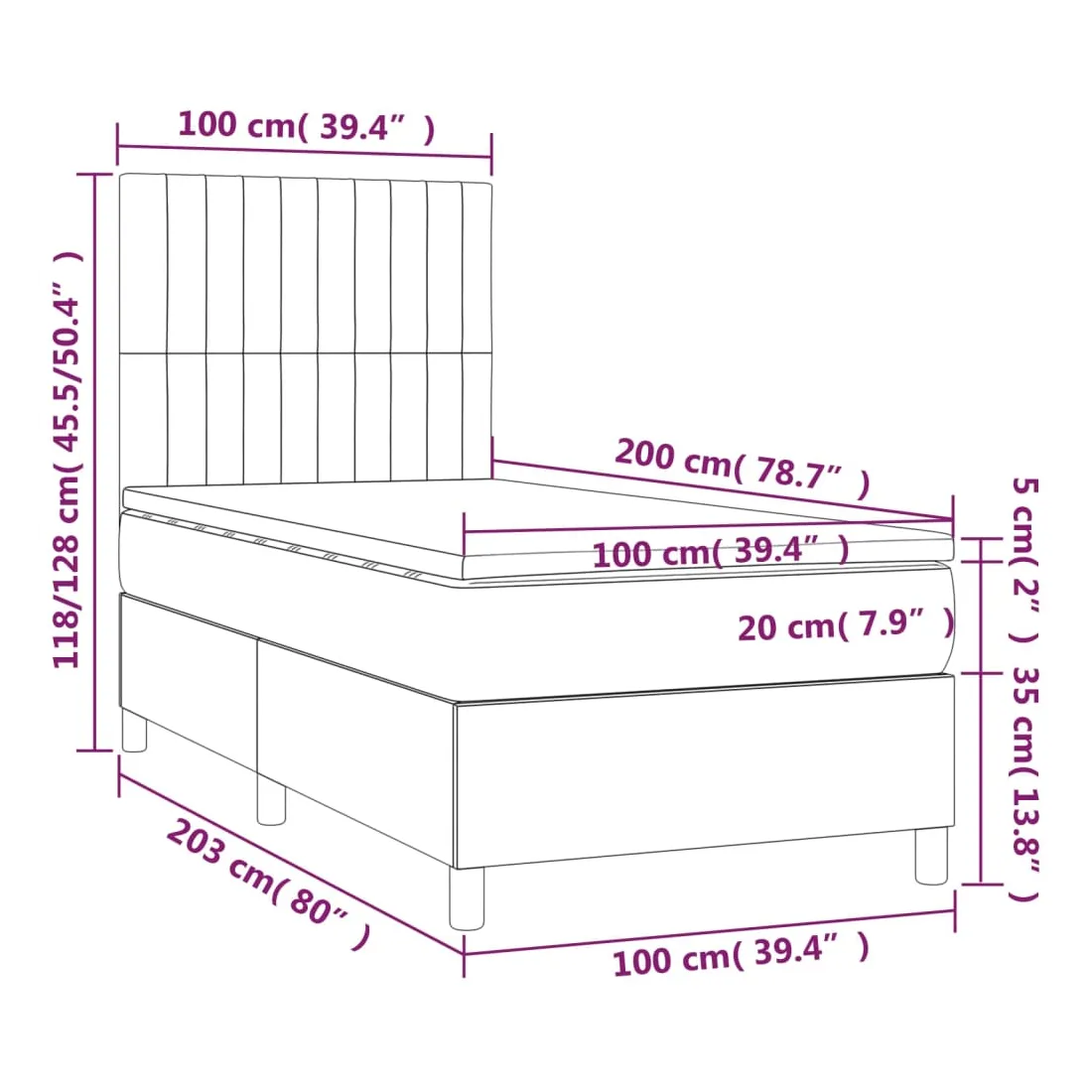 Sommier à lattes de lit avec matelas Gris foncé 100x200cm Tissu