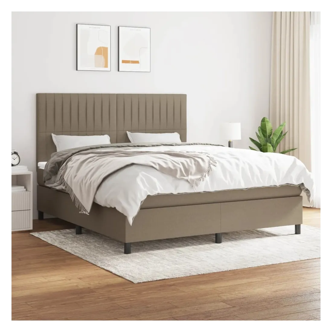 Sommier à lattes de lit avec matelas Taupe 160x200 cm Tissu