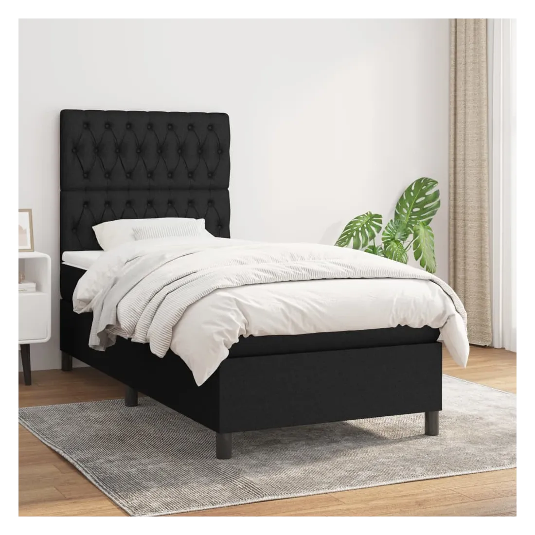 Sommier à lattes de lit avec matelas Noir 90x190 cm Tissu