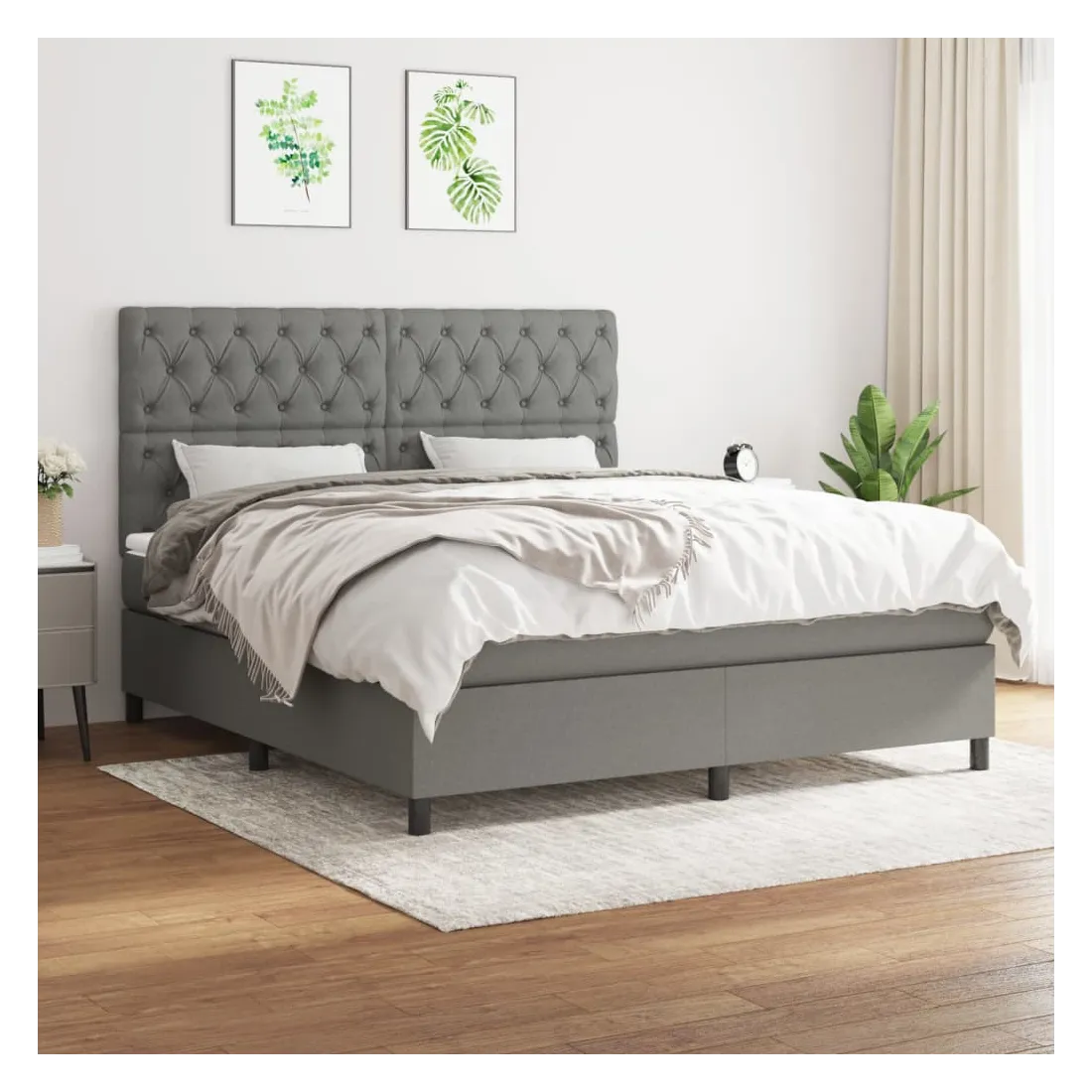 Sommier à lattes de lit avec matelas Gris foncé 160x200cm Tissu