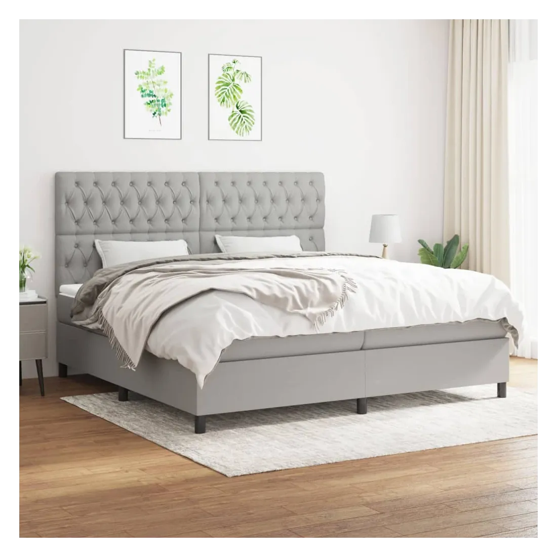 Sommier à lattes de lit avec matelas Gris clair 200x200cm Tissu