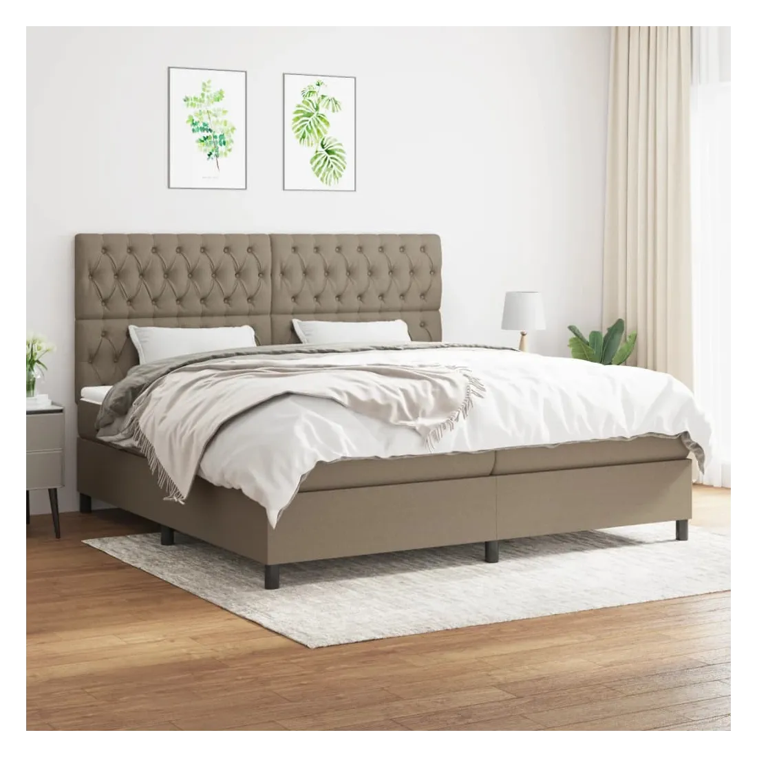 Sommier à lattes de lit avec matelas Taupe 200x200 cm Tissu