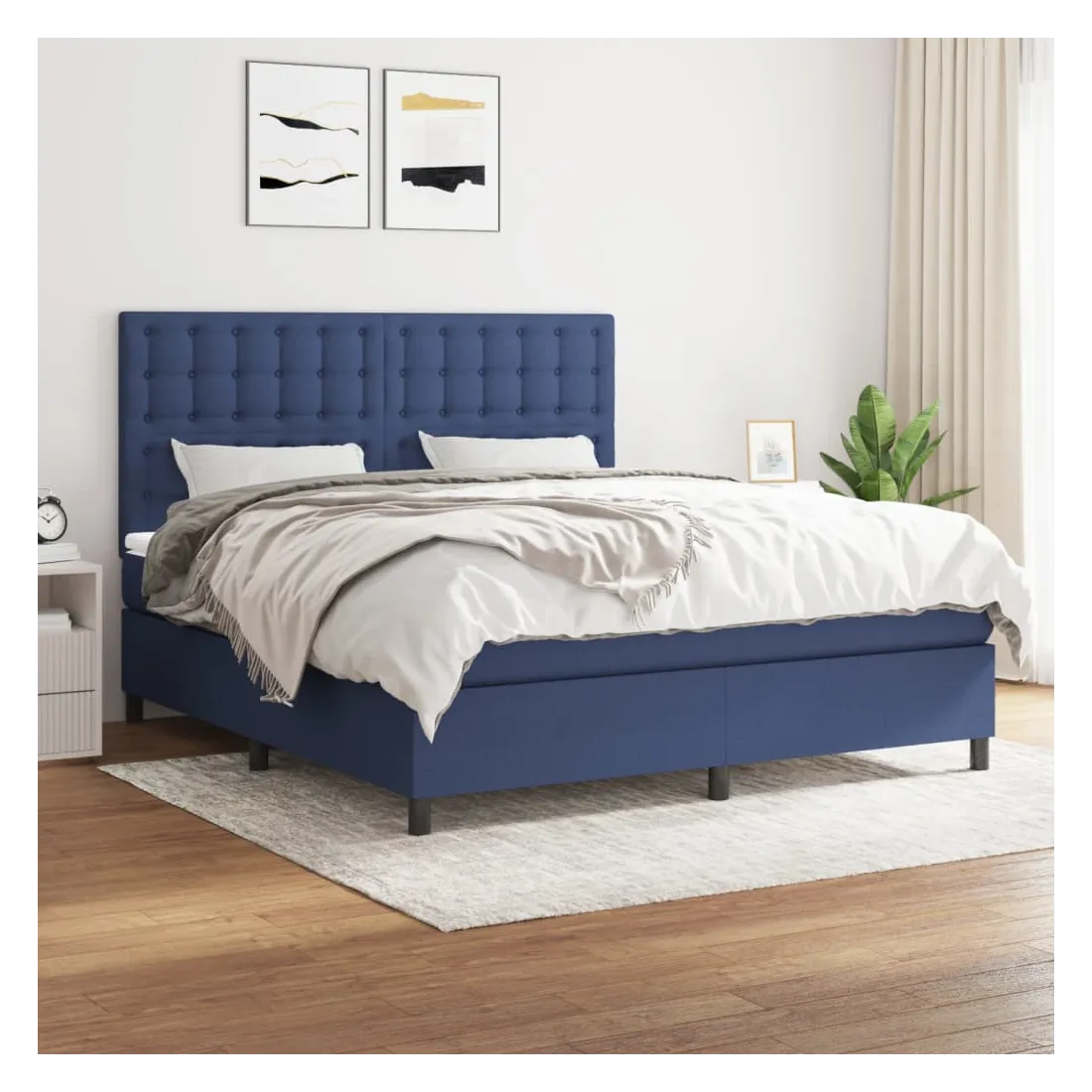 Sommier à lattes de lit avec matelas Bleu 160x200 cm Tissu