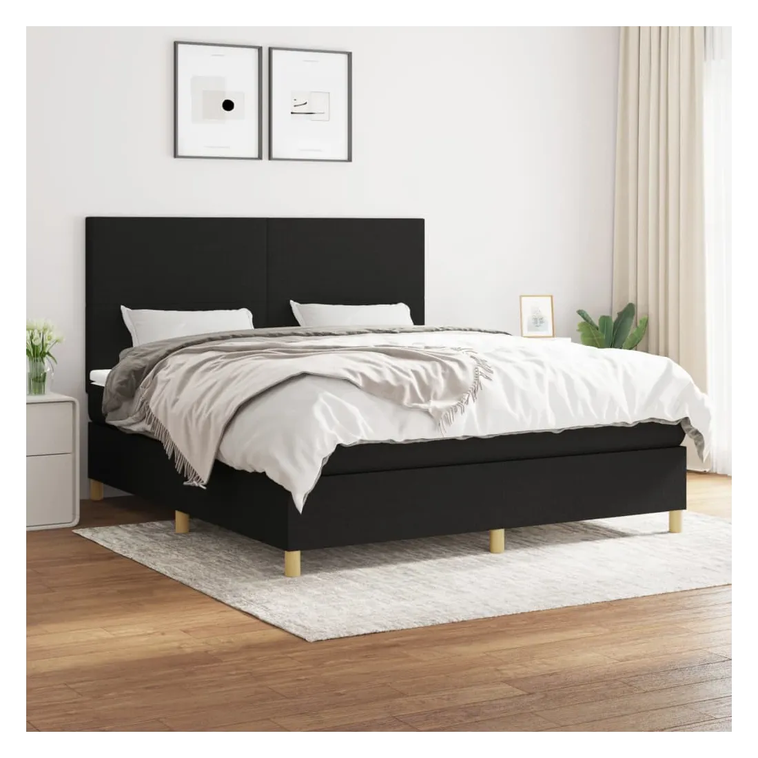 Sommier à lattes de lit avec matelas Noir 160x200 cm Tissu