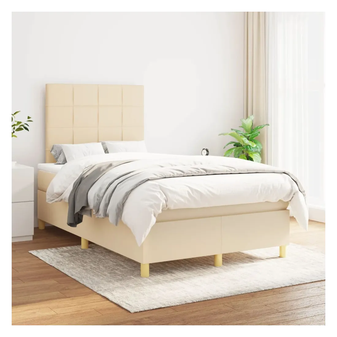 Sommier à lattes de lit avec matelas Crème 120x200 cm Tissu
