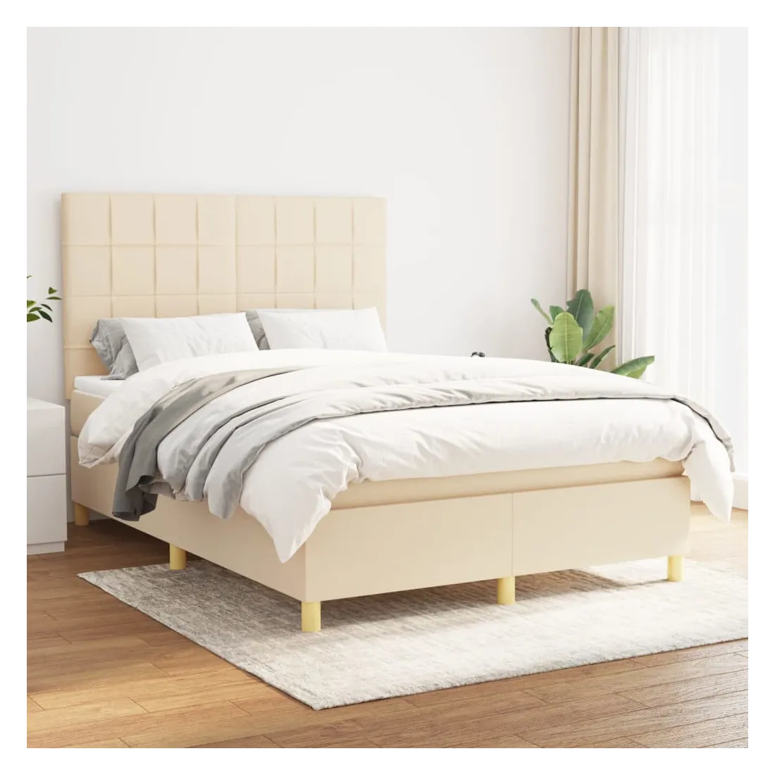 Sommier à lattes de lit avec matelas Crème 140x200 cm Tissu