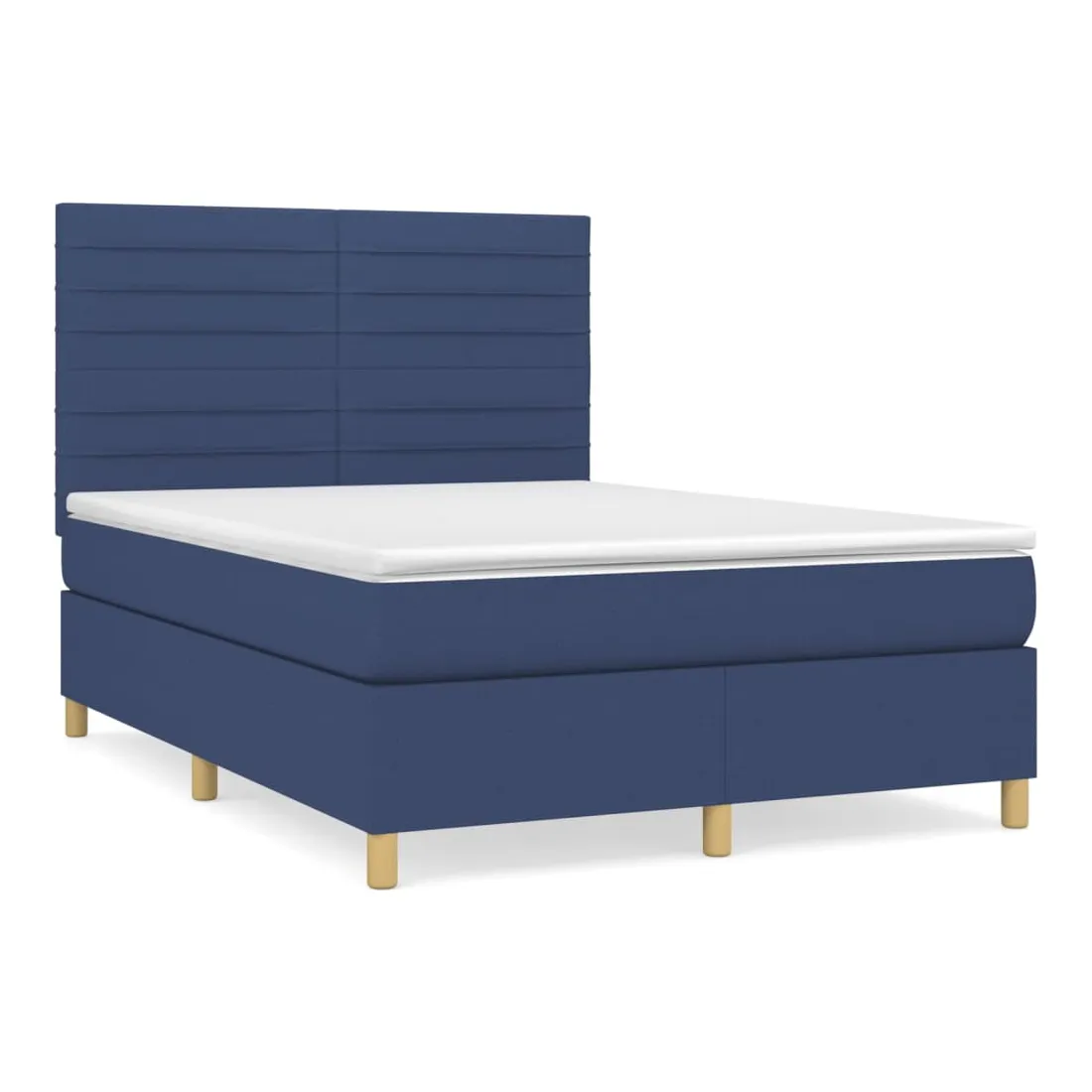 Sommier à lattes de lit avec matelas Bleu 140x190 cm Tissu