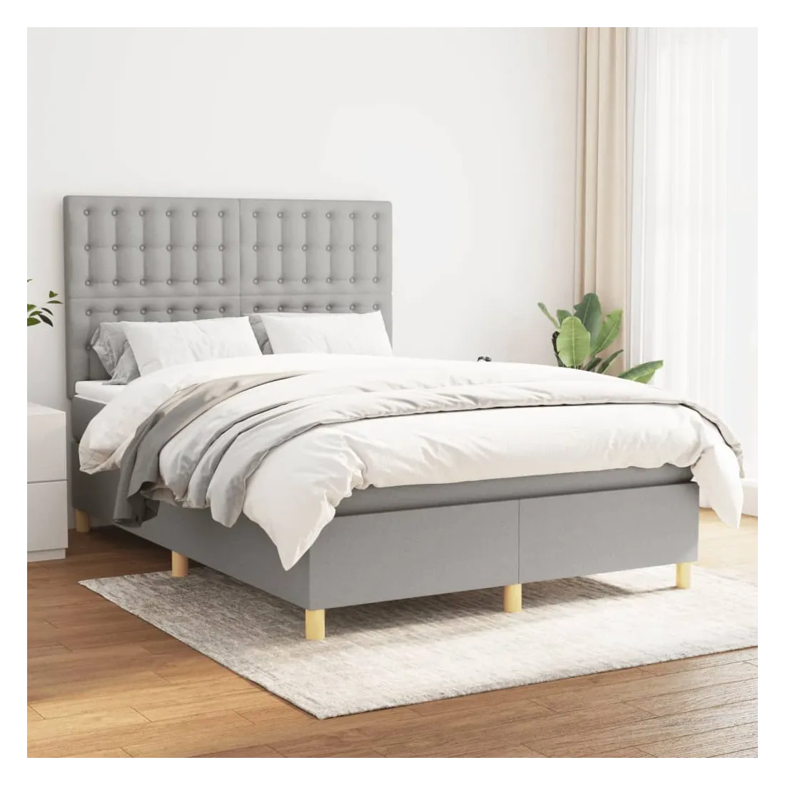 Sommier à lattes de lit avec matelas Gris clair 140x200cm Tissu
