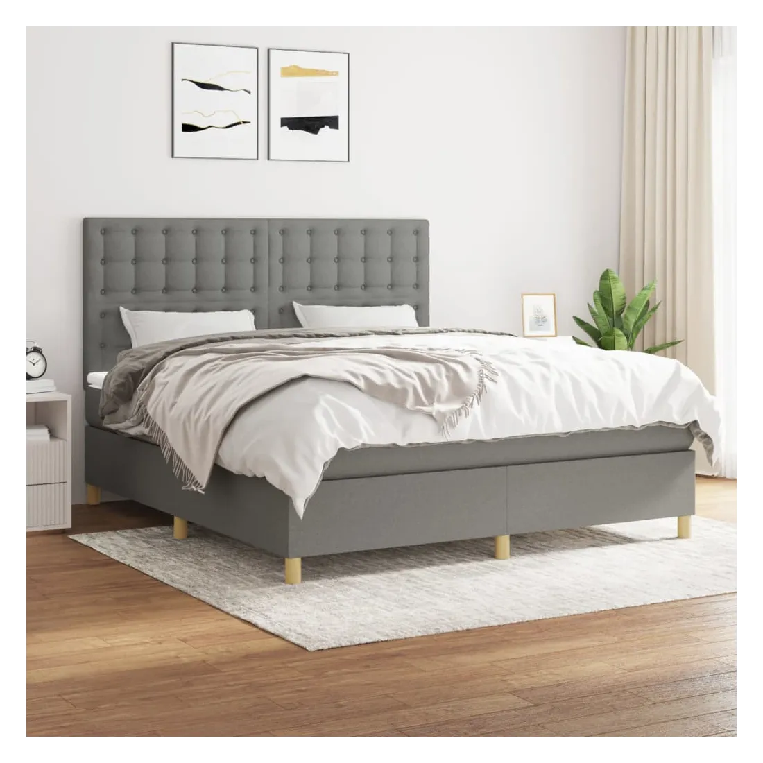 Sommier à lattes de lit avec matelas Gris foncé 180x200cm Tissu