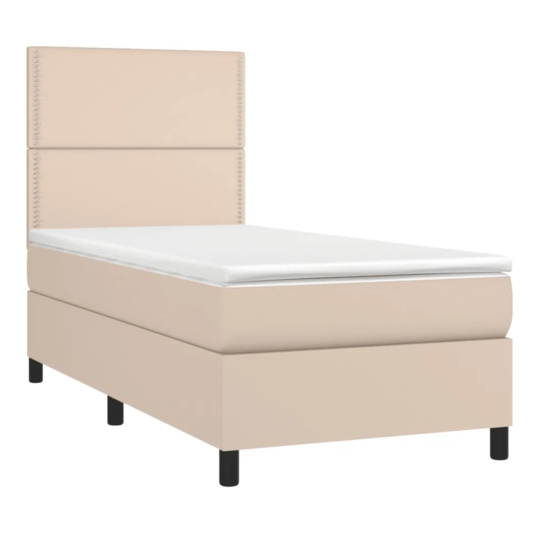Utilisez ce lit à sommier pour profiter d'une nuit de sommeil réparatrice ! Il vous offre une relaxation maximale et un sommeil agréable. Similicuir durable : le similicuir de qualité supérieure est un matériau très durable. Il est résistant aux taches, ce qui le rend facile à nettoyer avec un chiffon humide. La surface lisse donne également un aspect luxueux et la beauté du cuir véritable.Tête de lit pratique : la tête de lit est réglable en hauteur selon vos préférences. La tête de lit vous offre un excellent soutien du dos lorsque vous êtes assis dans votre lit pour lire ou regarder la télévision.Matelas à ressorts ensachés : le ressort ensaché individuel intégré est connu pour sa très haute qualité tout en assurant un haut niveau de durabilité et d'adaptabilité. Il peut absorber efficacement le bruit et les chocs causés par les sauts et les rotations.Support moyen-dur : ce matelas de lit offre une stabilité accrue et juste le niveau de fermeté sans sacrifier le confort. Il est donc idéal pour les personnes qui dorment sur le dos ou sur le ventre.Protège-matelas doux pour la peau : le protège-matelas est recouvert d'un tissu résistant et doux pour la peau, ce qui le rend souple et confortable. Remarque :Pour des raisons d'hygiène, le matelas ne peut pas être retourné si l'emballage est retiré ou ouvert.Chaque produit est livré avec un manuel de montage dans la boîte pour un montage facile.