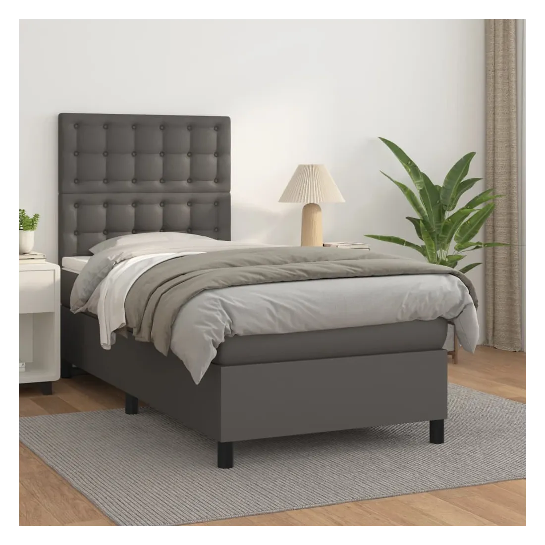 Sommier à lattes de lit avec matelas Gris 90x190 cm Similicuir