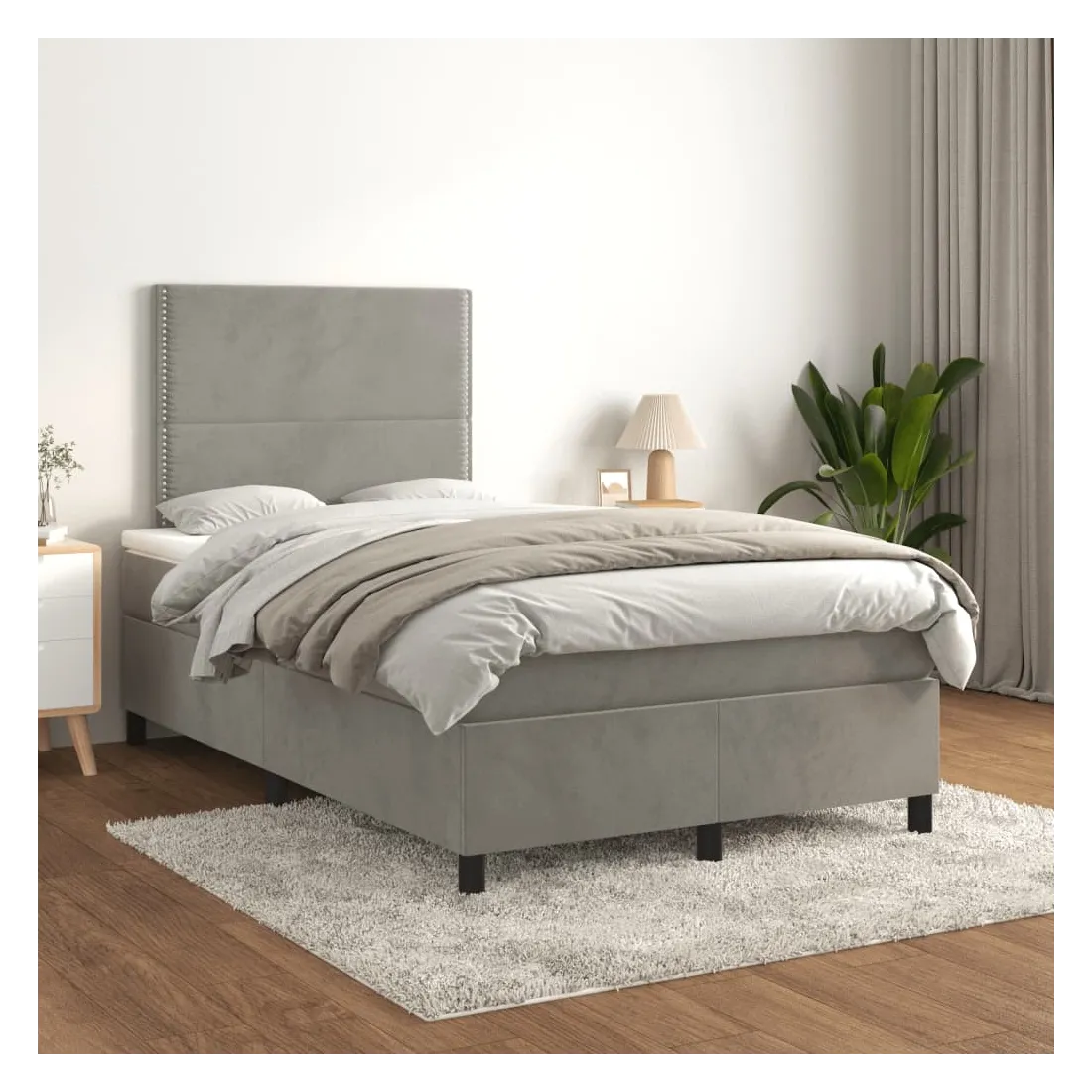 Sommier à lattes de lit et matelas Gris clair 120x200cm Velours
