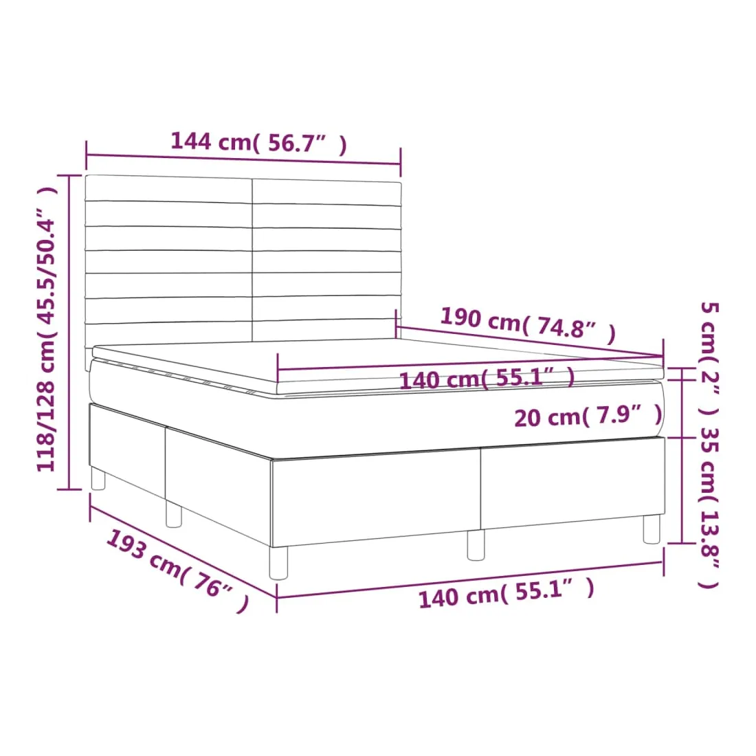 • Dimensions : 140 x 190 x 20 cm (l x L x H)