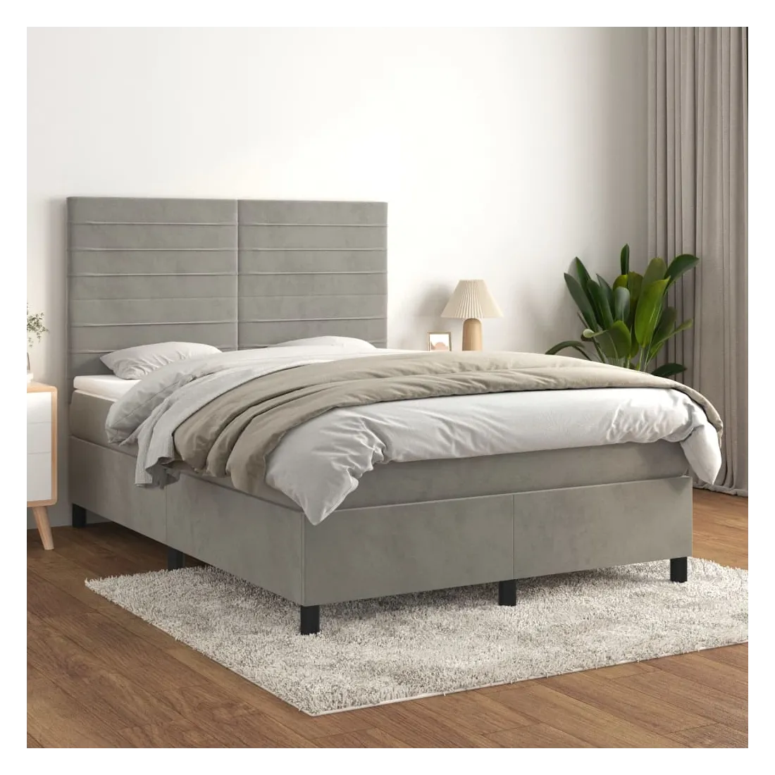 Sommier à lattes de lit et matelas Gris clair 140x200cm Velours
