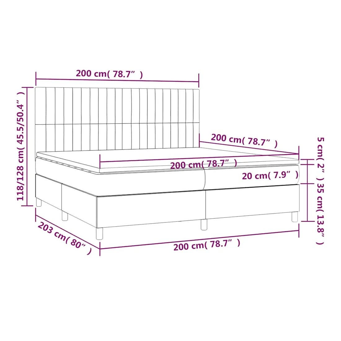 - Dimensions: 203 x 200 x 118/128 cm (L x l x H)