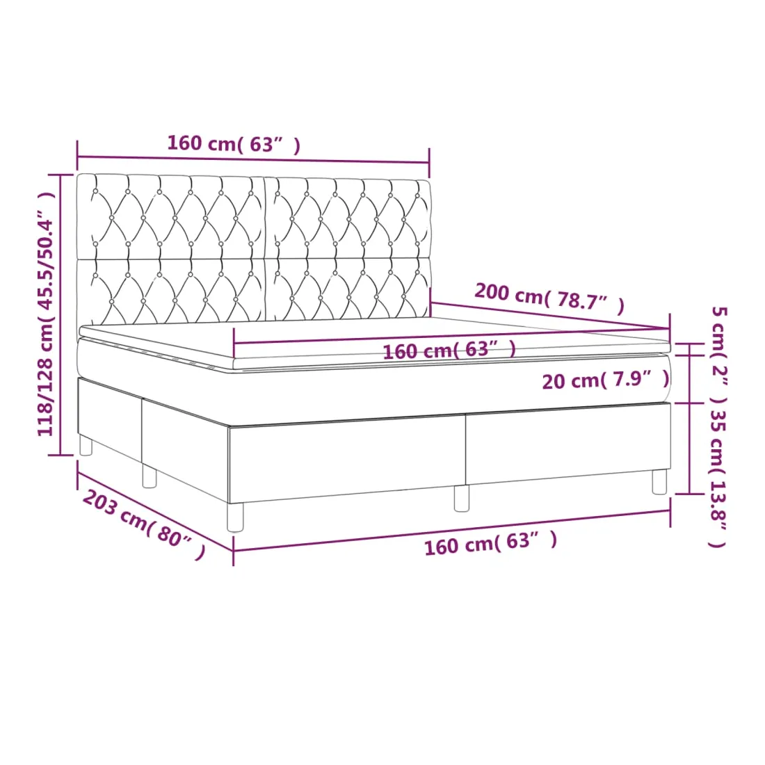 • Dimensions: 203 x 160 x 118/128 cm (L x l x H)