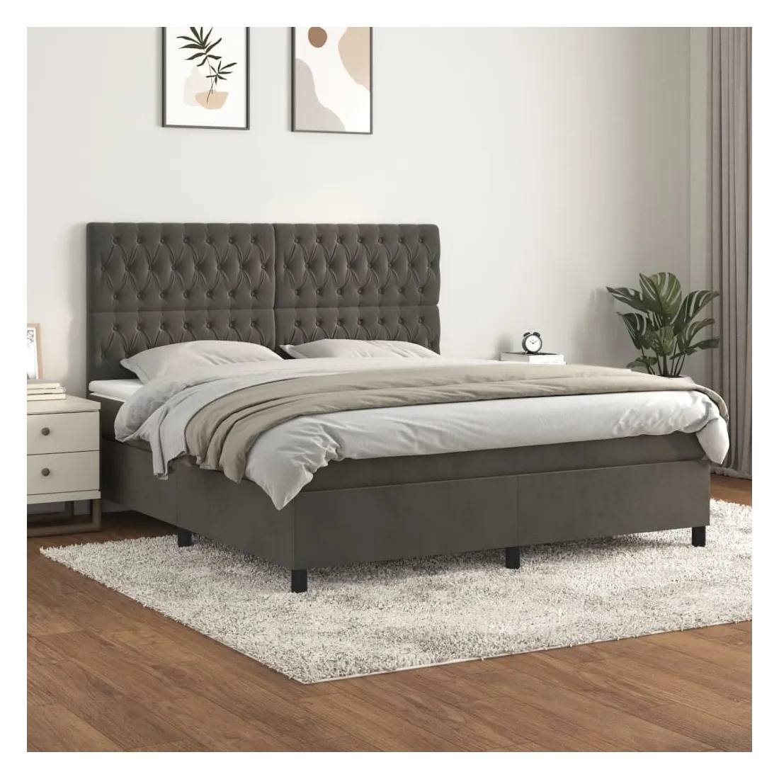 Utilisez ce lit à sommier pour profiter d'une nuit de sommeil réparatrice ! Il vous offre une relaxation maximale et un sommeil agréable. Velours doux : le velours est un tissu doux et luxueux qui se reconnaît à son tas dense de fibres uniformément coupées qui ont une touche lisse. Le tissu en velours présente un toucher doux distinctif, ce qui le rend confortable au toucher.Tête de lit pratique : la tête de lit est réglable en hauteur selon vos préférences. La tête de lit vous offre un excellent soutien du dos lorsque vous êtes assis dans votre lit pour lire ou regarder la télévision.Matelas à ressorts ensachés : le ressort ensaché individuel intégré est connu pour sa très haute qualité tout en assurant un haut niveau de durabilité et d'adaptabilité. Il peut absorber efficacement le bruit et les chocs causés par les sauts et les rotations.Support moyen-dur : ce matelas de lit offre une stabilité accrue et juste le niveau de fermeté sans sacrifier le confort. Il est donc idéal pour les personnes qui dorment sur le dos ou sur le ventre.Protège-matelas doux pour la peau : le protège-matelas est recouvert d'un tissu résistant et doux pour la peau, ce qui le rend souple et confortable. Remarque :Pour des raisons d'hygiène, le matelas ne peut pas être retourné si l'emballage est retiré ou ouvert.Chaque produit est livré avec un manuel de montage dans la boîte pour un montage facile.