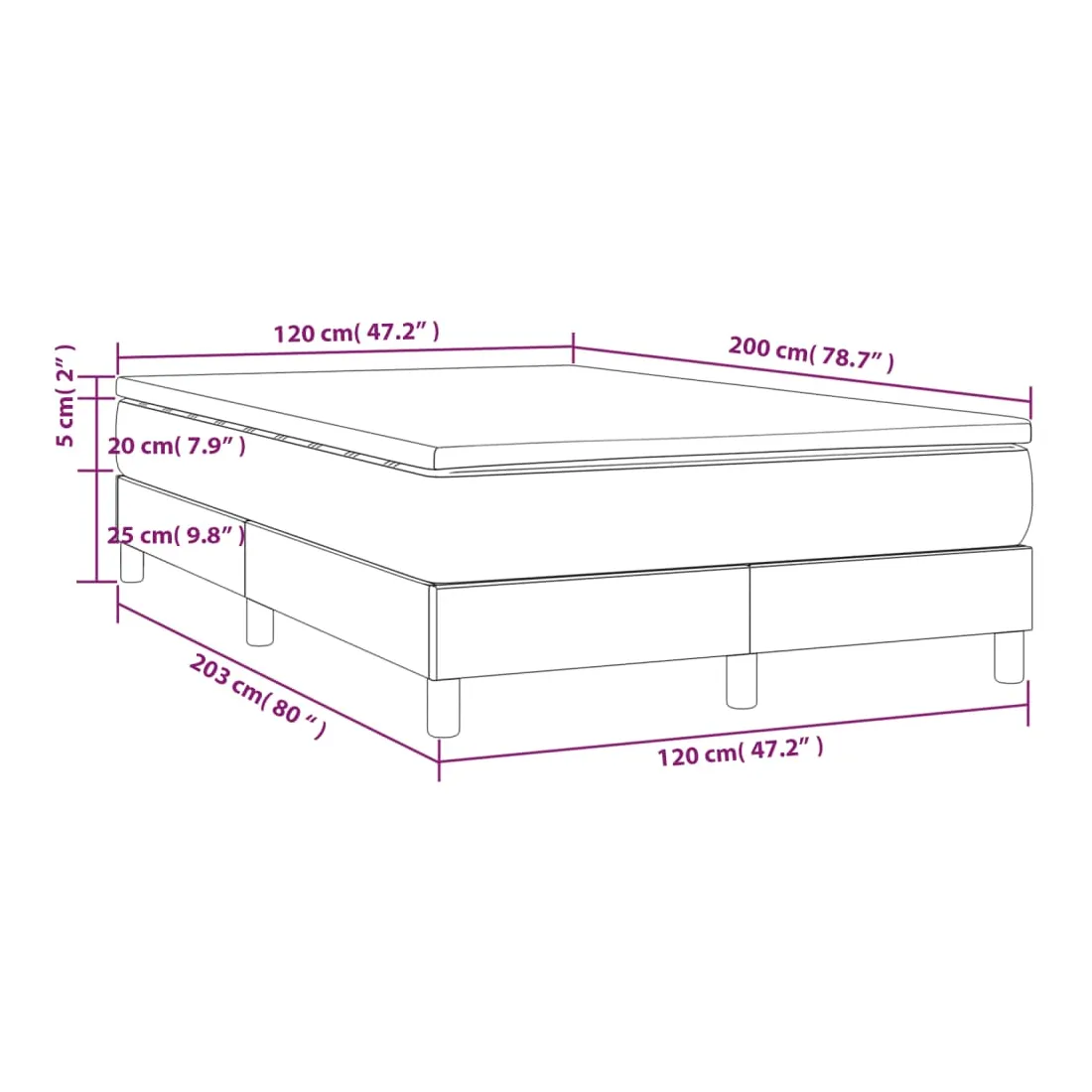 • Dimensions : 203 x 120 x 25 cm (L x l x H)