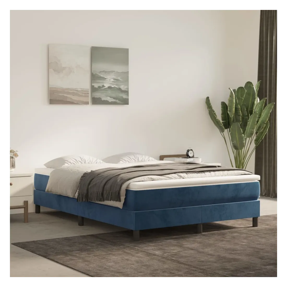 Utilisez ce lit à sommier pour profiter d'une nuit de sommeil réparatrice ! Il vous offre une relaxation maximale et un sommeil agréable. Velours doux : le velours est un tissu doux et luxueux qui se reconnaît à son tas dense de fibres uniformément coupées qui ont une touche lisse. Le tissu en velours présente un toucher doux distinctif, ce qui le rend confortable au toucher.Matelas à ressorts ensachés : le ressort ensaché individuel intégré est connu pour sa très haute qualité tout en assurant un haut niveau de durabilité et d'adaptabilité. Il peut absorber efficacement le bruit et les chocs causés par les sauts et les rotations.Support moyen-dur : ce matelas de lit offre une stabilité accrue et juste le niveau de fermeté sans sacrifier le confort. Il est donc idéal pour les personnes qui dorment sur le dos ou sur le ventre.Protège-matelas doux pour la peau : le protège-matelas est recouvert d'un tissu résistant et doux pour la peau, ce qui le rend souple et confortable.Lattes en contreplaqué : le lit est équipé de lattes en contreplaqué, qui assurent une bonne répartition du poids, garantissant que le matelas reste en place à chaque torsion de votre corps pendant le sommeil. Remarque :Pour des raisons d'hygiène, le matelas ne peut pas être retourné si l'emballage est retiré ou ouvert.Chaque produit est livré avec un manuel de montage dans la boîte pour un montage facile.
