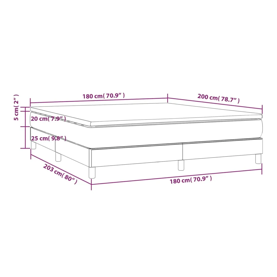 • Dimensions : 203 x 180 x 25 cm (L x l x H)