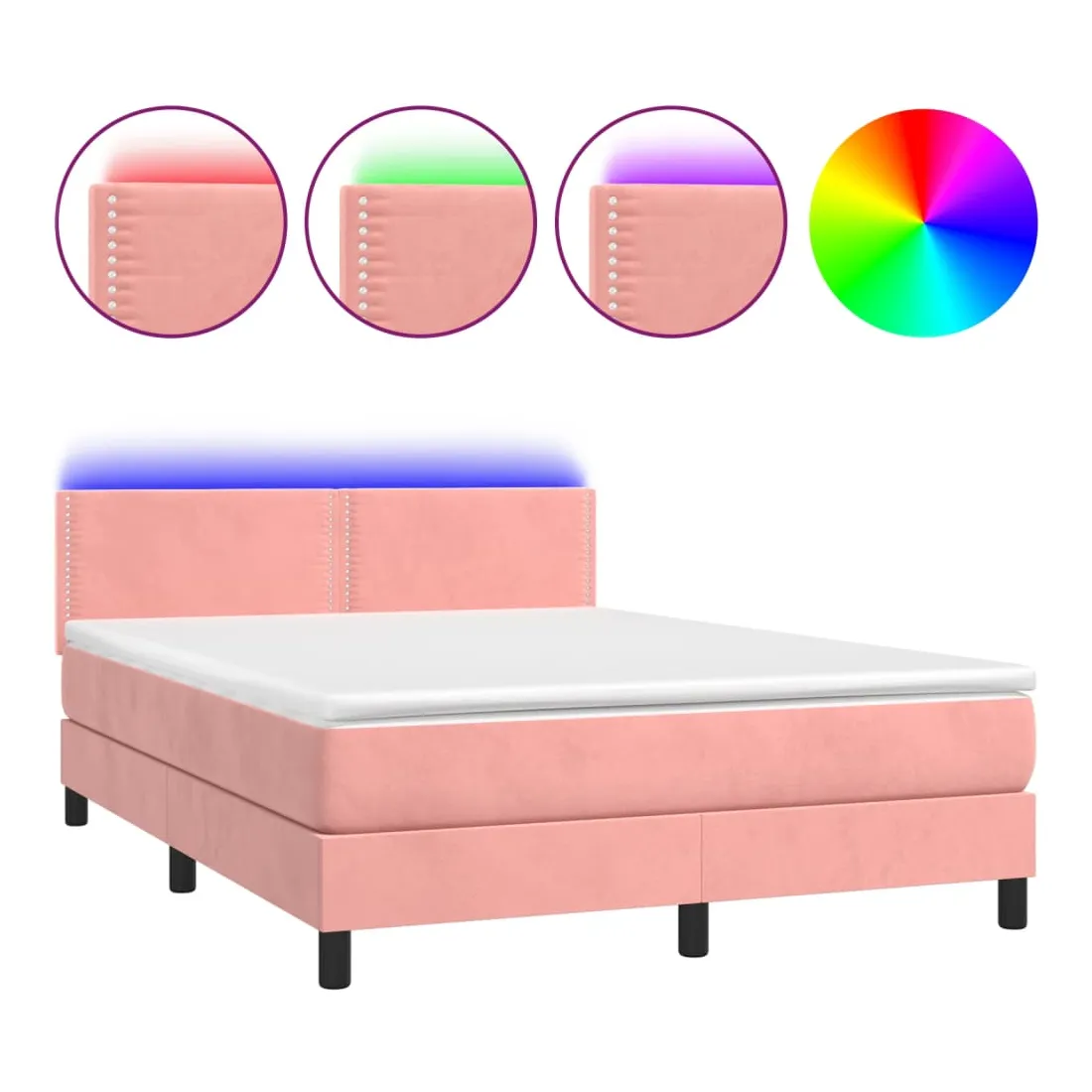 vidaXLUtilisez ce sommier tapissier avec matelas et LED pour profiter d'un sommeil réparateur ! C'est le point central de votre chambre à coucher. Velours doux : le velours est un tissu doux et luxueux qui se reconnaît à son tas dense de fibres uniformément coupées qui ont une touche lisse. Le tissu en velours présente un toucher doux distinctif, ce qui le rend confortable au toucher.Tête de lit pratique : la tête de lit est réglable en hauteur selon vos préférences. La tête de lit vous offre un excellent soutien du dos lorsque vous êtes assis dans votre lit pour lire ou regarder la télévision.Bande LED colorée : apportez de l'éclairage dans l'obscurité avec des lumières LED colorées !Matelas à ressorts ensachés : le ressort ensaché individuel intégré est connu pour sa très haute qualité tout en assurant un haut niveau de durabilité et d'adaptabilité. Il peut absorber efficacement le bruit et les chocs causés par les sauts et les rotations.Protège-matelas doux pour la peau : le protège-matelas est recouvert d'un tissu résistant et doux pour la peau, ce qui le rend souple et confortable. Remarque :Pour des raisons d'hygiène, le matelas ne peut pas être retourné si l'emballage est retiré ou ouvert.Chaque produit est livré avec un manuel de montage dans la boîte pour un montage facile.Seule la partie avec un symbole de ciseaux peut être coupée et seule la partie avec l'USB continuera à fonctionner comme avant.Ce produit est doté d'un connecteur USB, mais la source d'alimentation certifiée de USB 5V n'est pas incluse.