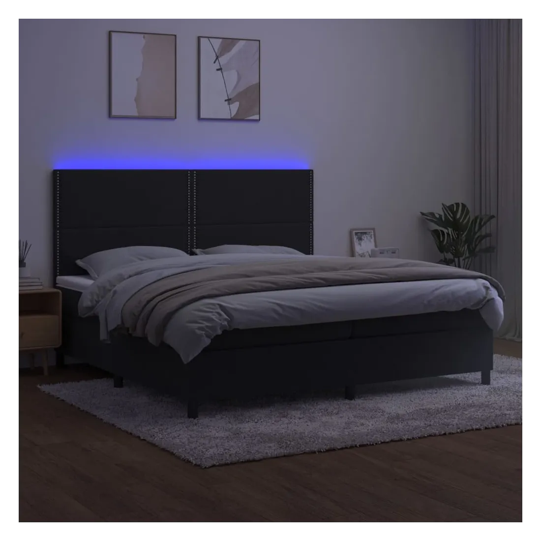 Utilisez ce sommier tapissier avec matelas et LED pour profiter d'un sommeil réparateur ! C'est le point central de votre chambre à coucher. Velours doux : le velours est un tissu doux et luxueux qui se reconnaît à son tas dense de fibres uniformément coupées qui ont une touche lisse. Le tissu en velours présente un toucher doux distinctif, ce qui le rend confortable au toucher.Tête de lit pratique : la tête de lit est réglable en hauteur selon vos préférences. La tête de lit vous offre un excellent soutien du dos lorsque vous êtes assis dans votre lit pour lire ou regarder la télévision.Bande LED colorée : apportez de l'éclairage dans l'obscurité avec des lumières LED colorées !Matelas à ressorts ensachés : le ressort ensaché individuel intégré est connu pour sa très haute qualité tout en assurant un haut niveau de durabilité et d'adaptabilité. Il peut absorber efficacement le bruit et les chocs causés par les sauts et les rotations.Protège-matelas doux pour la peau : le protège-matelas est recouvert d'un tissu résistant et doux pour la peau, ce qui le rend souple et confortable. Remarque :Pour des raisons d'hygiène, le matelas ne peut pas être retourné si l'emballage est retiré ou ouvert.Seule la partie avec un symbole de ciseaux peut être coupée et seule la partie avec l'USB continuera à fonctionner comme avant.Chaque produit est livré avec un manuel de montage dans la boîte pour un montage facile.Ce produit est doté d'un connecteur USB, mais la source d'alimentation certifiée de USB 5V n'est pas incluse.