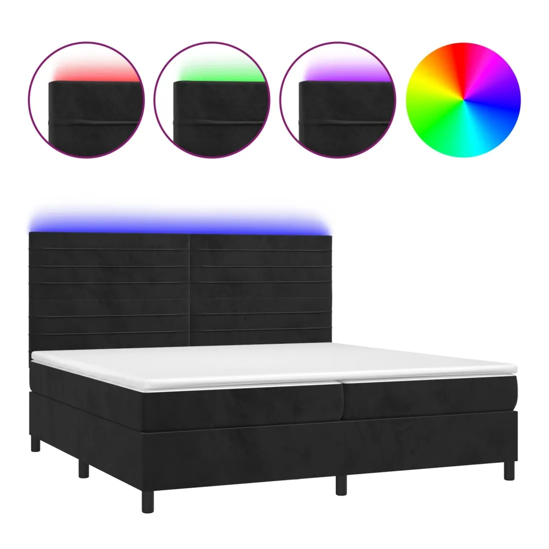 Utilisez ce sommier tapissier avec matelas et LED pour profiter d'un sommeil réparateur ! C'est le point central de votre chambre à coucher. Velours doux : le velours est un tissu doux et luxueux qui se reconnaît à son tas dense de fibres uniformément coupées qui ont une touche lisse. Le tissu en velours présente un toucher doux distinctif, ce qui le rend confortable au toucher.Tête de lit pratique : la tête de lit est réglable en hauteur selon vos préférences. La tête de lit vous offre un excellent soutien du dos lorsque vous êtes assis dans votre lit pour lire ou regarder la télévision.Bande LED colorée : apportez de l'éclairage dans l'obscurité avec des lumières LED colorées !Matelas à ressorts ensachés : le ressort ensaché individuel intégré est connu pour sa très haute qualité tout en assurant un haut niveau de durabilité et d'adaptabilité. Il peut absorber efficacement le bruit et les chocs causés par les sauts et les rotations.Protège-matelas doux pour la peau : le protège-matelas est recouvert d'un tissu résistant et doux pour la peau, ce qui le rend souple et confortable. Remarque :Pour des raisons d'hygiène, le matelas ne peut pas être retourné si l'emballage est retiré ou ouvert.Seule la partie avec un symbole de ciseaux peut être coupée et seule la partie avec l'USB continuera à fonctionner comme avant.Chaque produit est livré avec un manuel de montage dans la boîte pour un montage facile.Ce produit est doté d'un connecteur USB, mais la source d'alimentation certifiée de USB 5V n'est pas incluse.