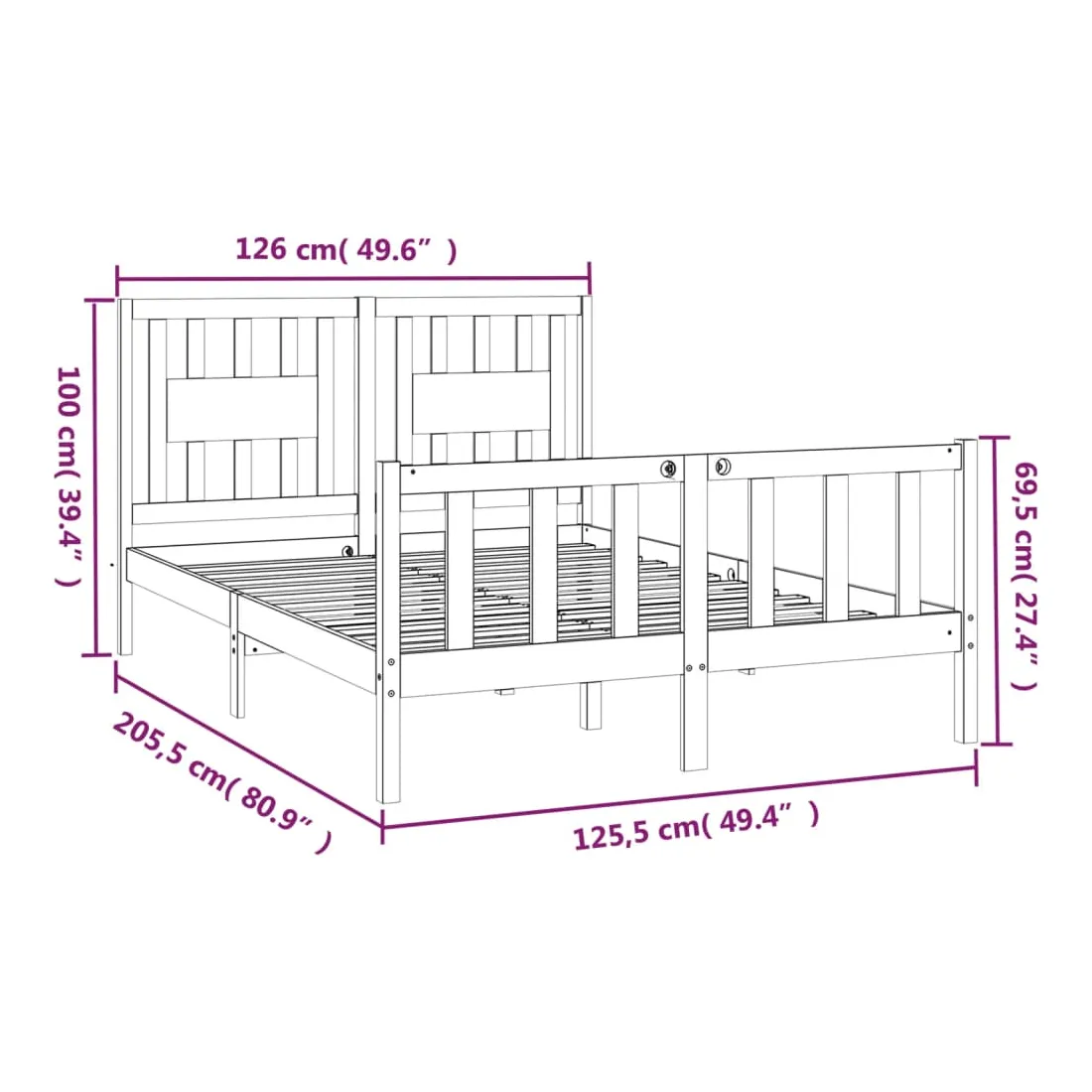- Dimensions du cadre de lit : 205,5 x 125,5 x 69,5 cm (L x l x H)