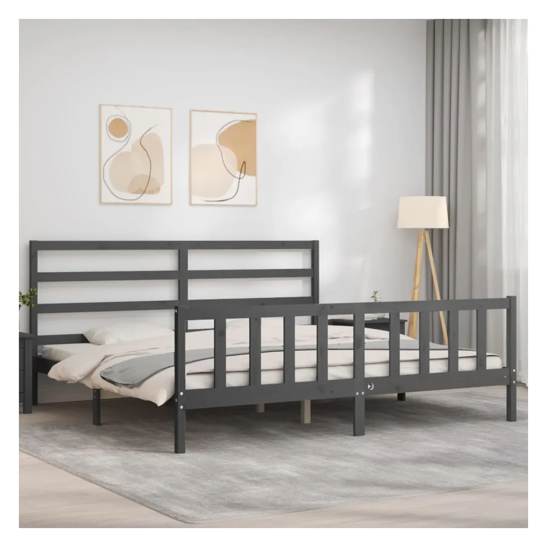 Cadre de lit sans matelas gris 200x200 cm bois massif de pin