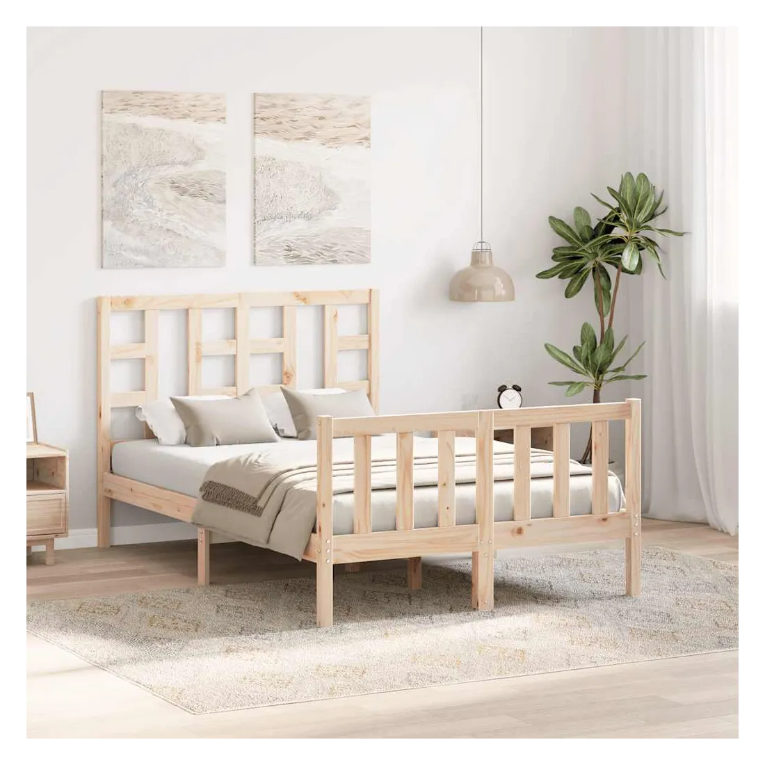 Profitez d'une bonne nuit de sommeil dans ce cadre de lit en bois ! Il sera un supplément pratique et décoratif à votre intérieur. Matériau durable : le bois de pin massif est un matériau naturel magnifique. Le bois de pin a un grain droit et les nœuds donnent au matériau son aspect caractéristique et rustique. Fabriqué en pin massif, ce lit est robuste et durable.Lattes en contreplaqué : les lattes en contreplaqué assurent une bonne répartition du poids, garantissant à votre matelas le soutien et la respirabilité dont il a tant besoin.Tête de lit et pied de lit fonctionnels : la tête et le pied de lit du lit en bois peuvent maintenir votre matelas en place. De plus, la tête de lit vous offre un excellent soutien du dos lorsque vous vous asseyez dans le lit pour lire ou regarder la télévision. Bon à savoir : Un matelas n'est pas inclus avec ce lit. Nous offrons une sélection variée de matelas. Vous pouvez consulter notre boutique pour trouver un matelas assorti.
