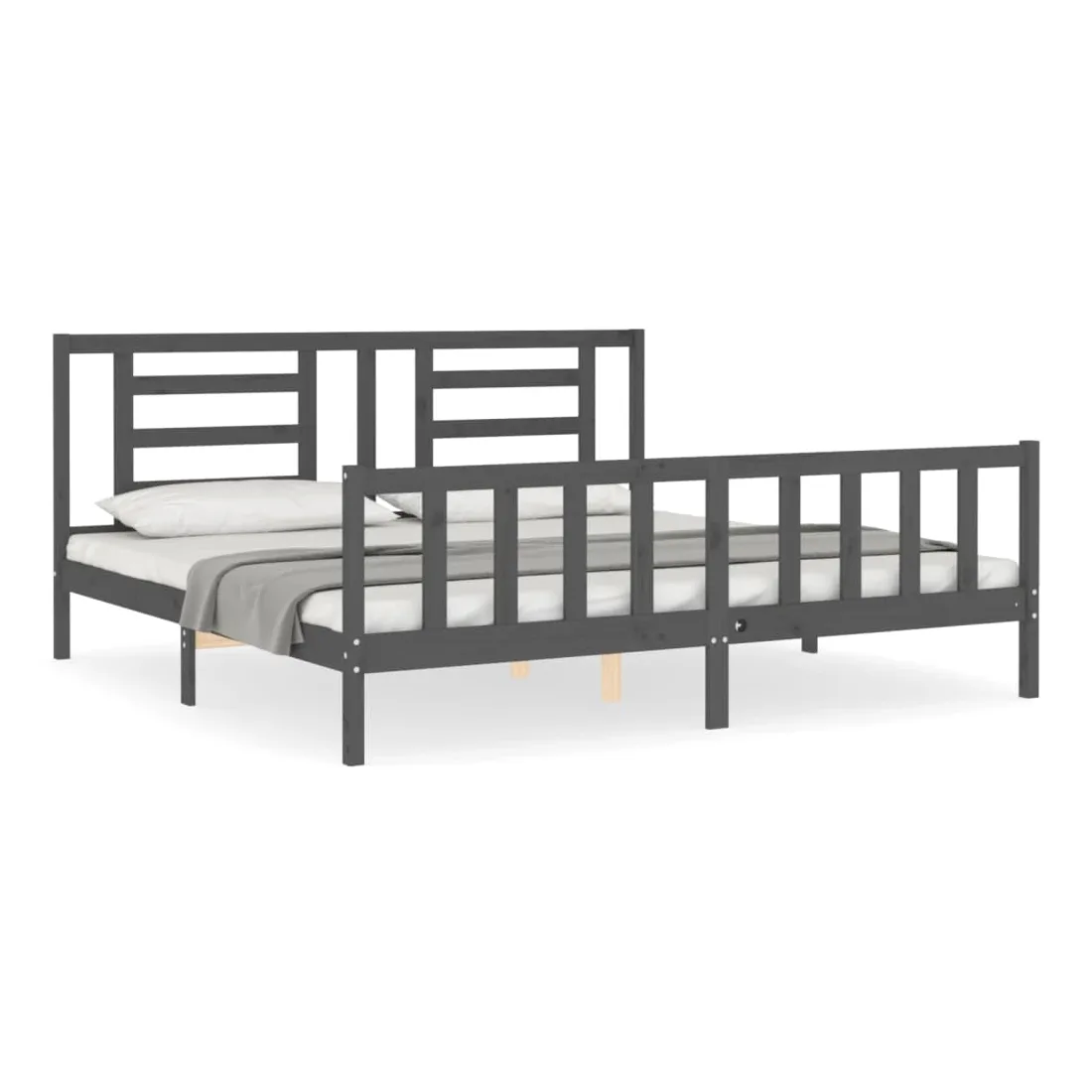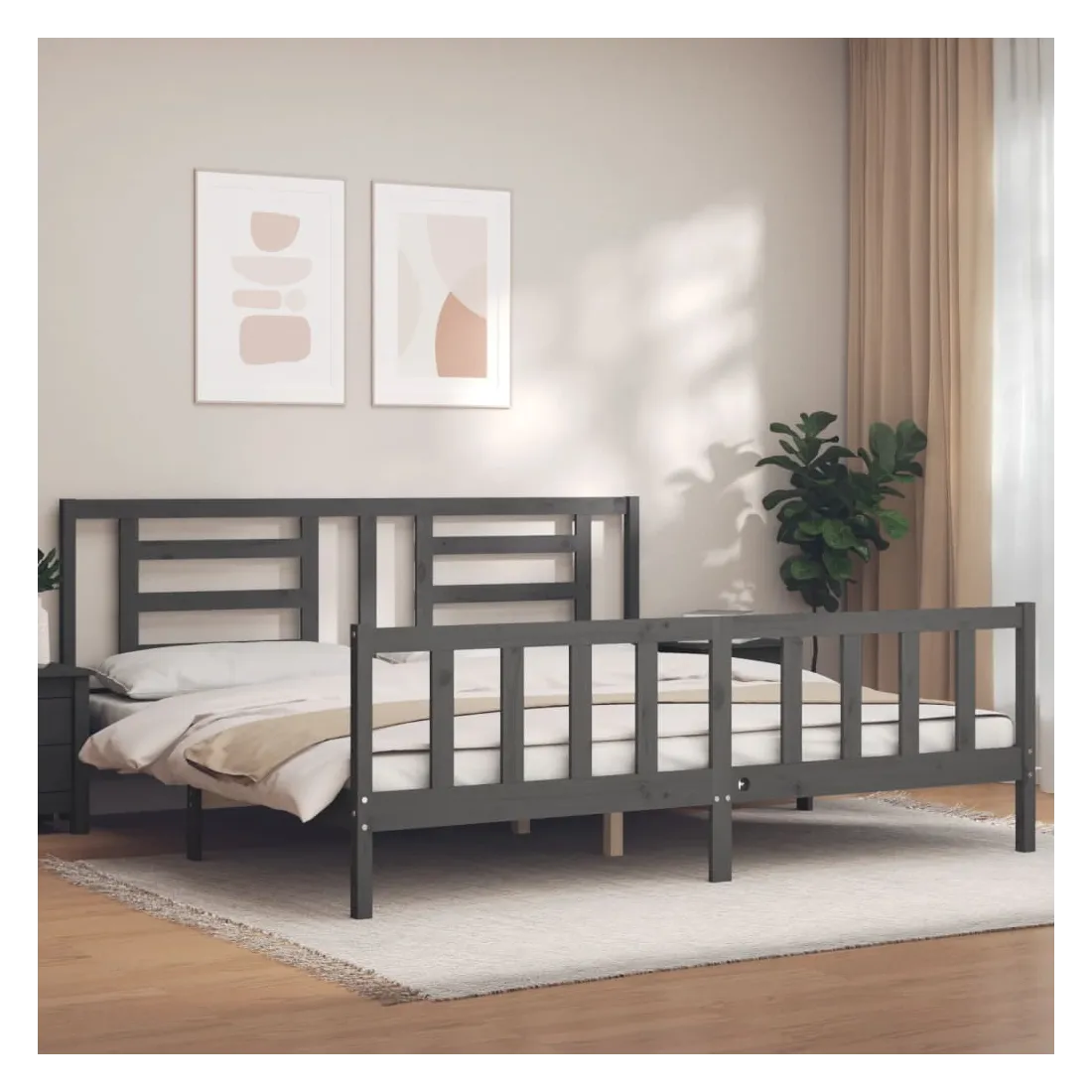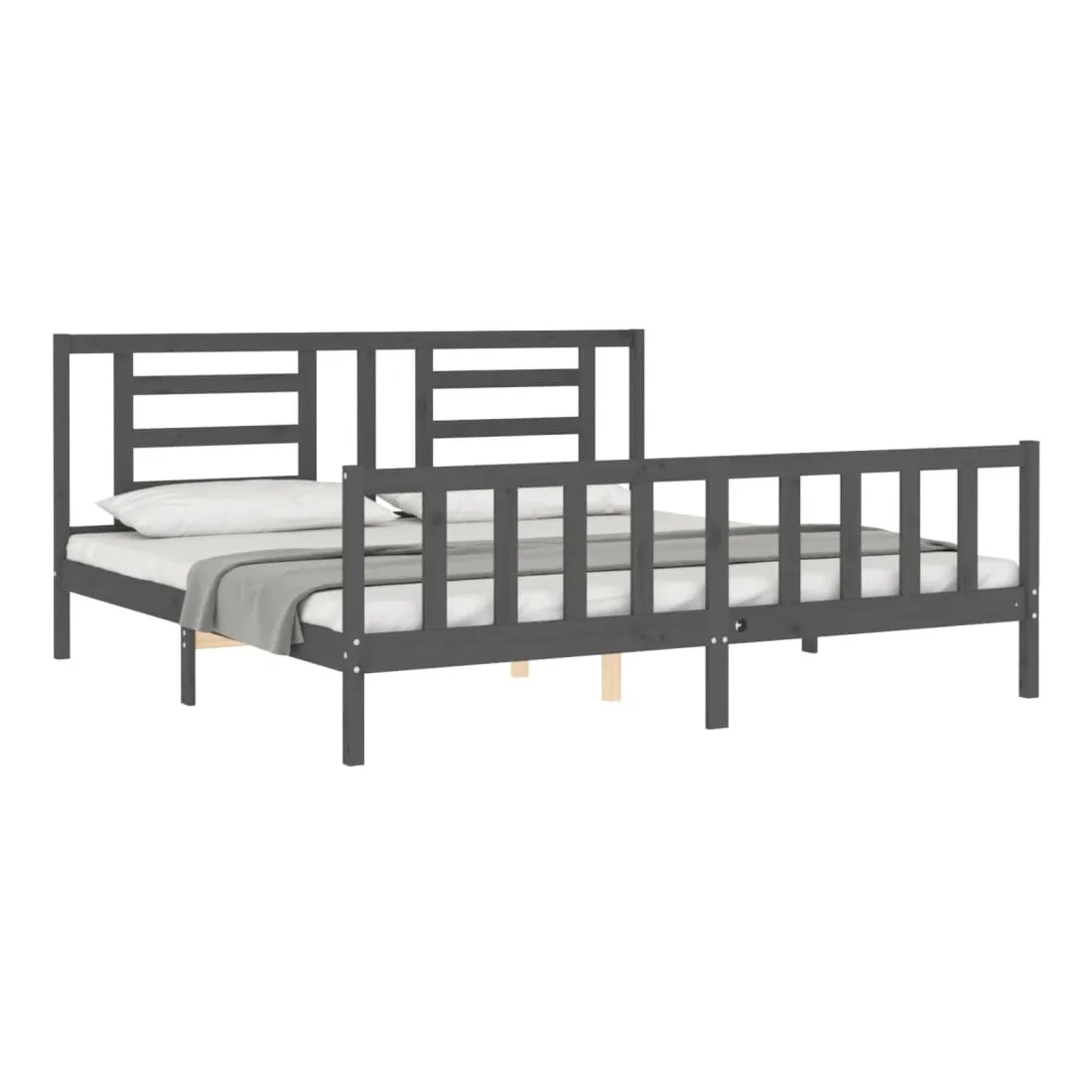 Cadre de lit sans matelas gris 200x200 cm bois massif de pin