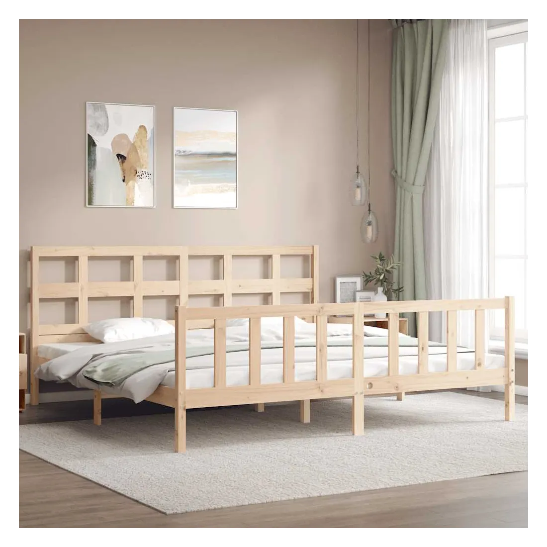 Profitez d'une bonne nuit de sommeil dans ce cadre de lit en bois ! Il sera un supplément pratique et décoratif à votre intérieur. Matériau durable : le bois de pin massif est un matériau naturel magnifique. Le bois de pin a un grain droit et les nœuds donnent au matériau son aspect caractéristique et rustique. Fabriqué en pin massif, ce lit est robuste et durable. Lattes en contreplaqué : les lattes en contreplaqué assurent une bonne répartition du poids, garantissant à votre matelas le soutien et la respirabilité dont il a tant besoin. Tête de lit et pied de lit fonctionnels : la tête et le pied de lit du lit en bois peuvent maintenir votre matelas en place. De plus, la tête de lit vous offre un excellent soutien du dos lorsque vous vous asseyez dans le lit pour lire ou regarder la t