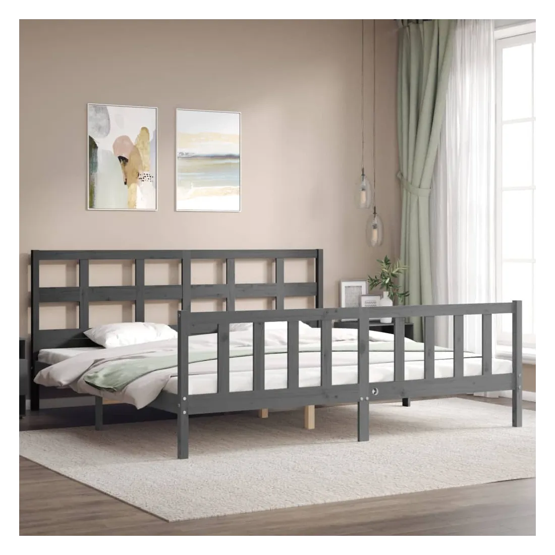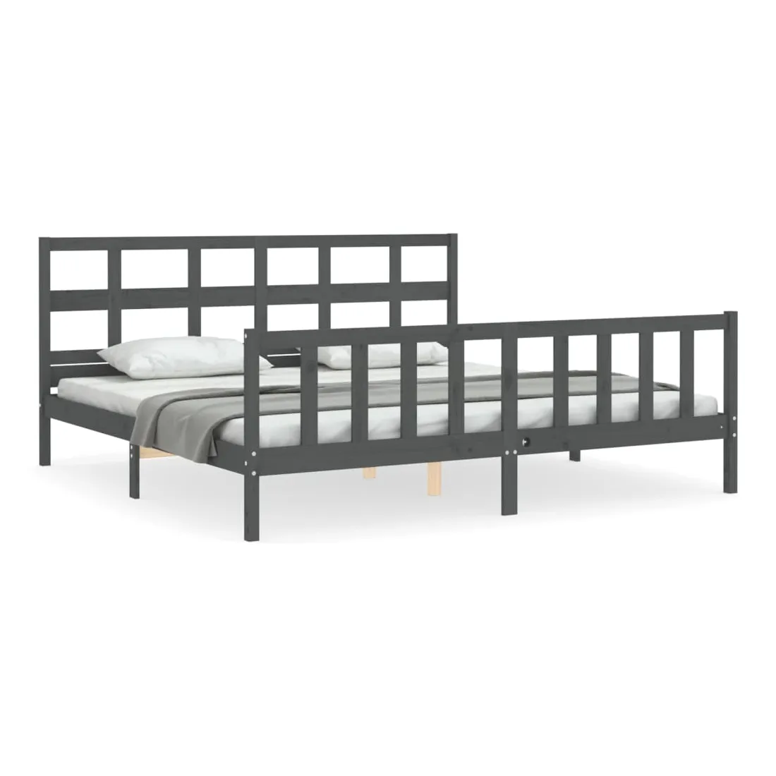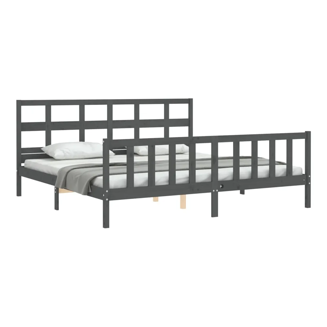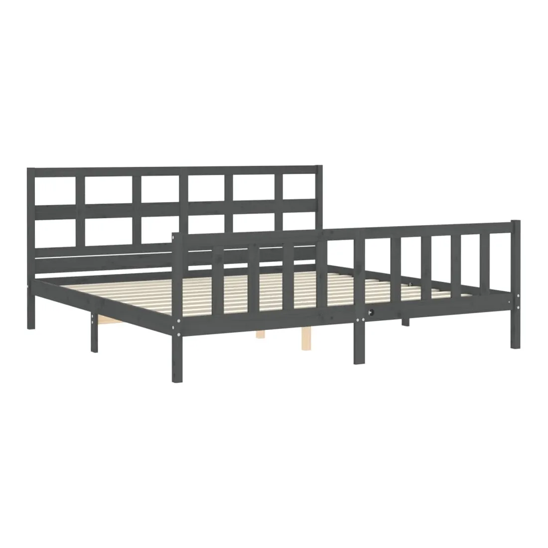Cadre de lit sans matelas gris 200x200 cm bois massif de pin