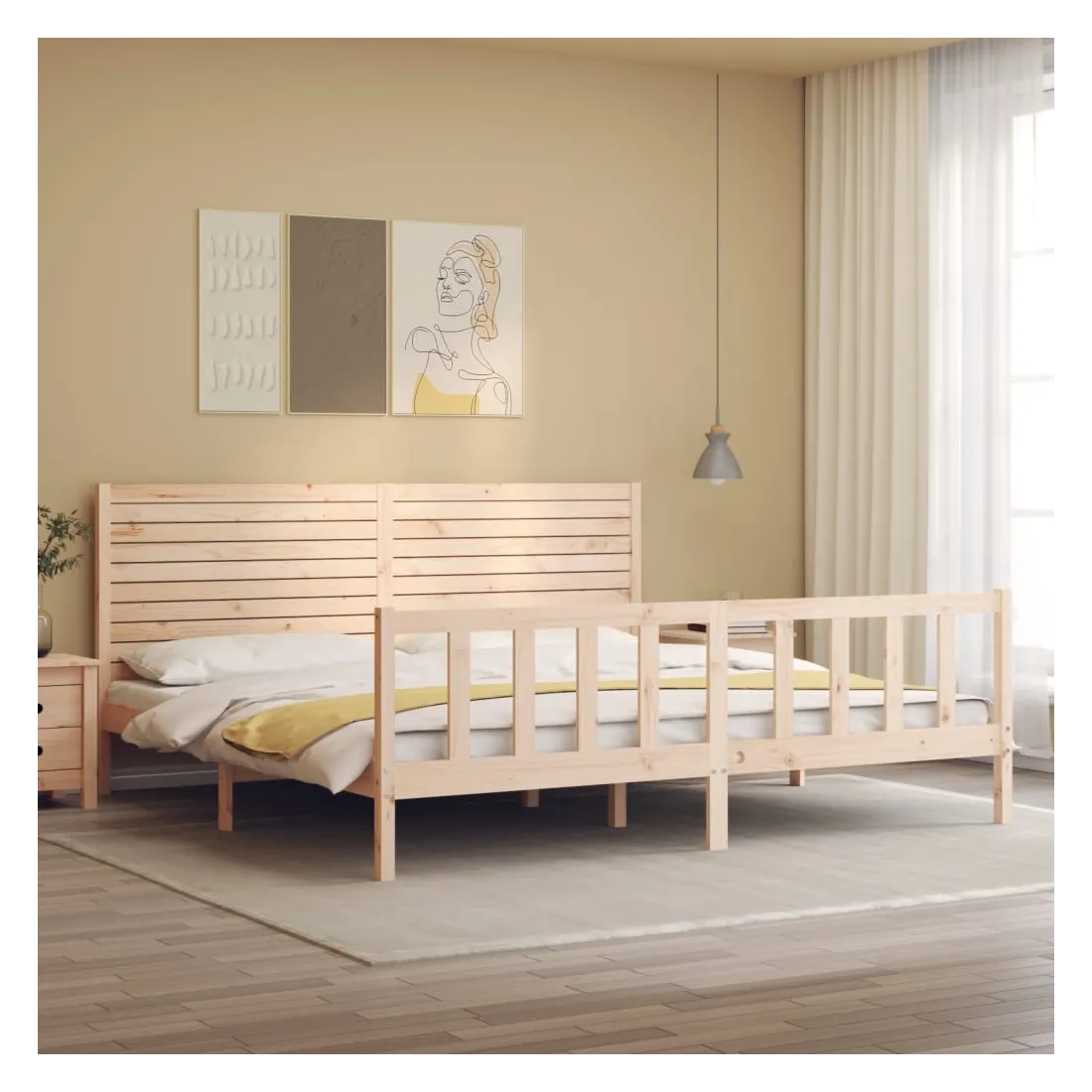 Profitez d'une bonne nuit de sommeil dans ce cadre de lit en bois ! Il sera un supplément pratique et décoratif à votre intérieur. Matériau durable : le bois de pin massif est un matériau naturel magnifique. Le bois de pin a un grain droit et les nœuds donnent au matériau son aspect caractéristique et rustique. Fabriqué en pin massif, ce lit est robuste et durable.Lattes en contreplaqué : les lattes en contreplaqué assurent une bonne répartition du poids, garantissant à votre matelas le soutien et la respirabilité dont il a tant besoin.Tête de lit et pied de lit fonctionnels : la tête et le pied de lit du lit en bois peuvent maintenir votre matelas en place. De plus, la tête de lit vous offre un excellent soutien du dos lorsque vous vous asseyez dans le lit pour lire ou regarder la télévision. Bon à savoir : Un matelas n'est pas inclus avec ce lit. Nous offrons une sélection variée de matelas. Vous pouvez consulter notre boutique pour trouver un matelas assorti.