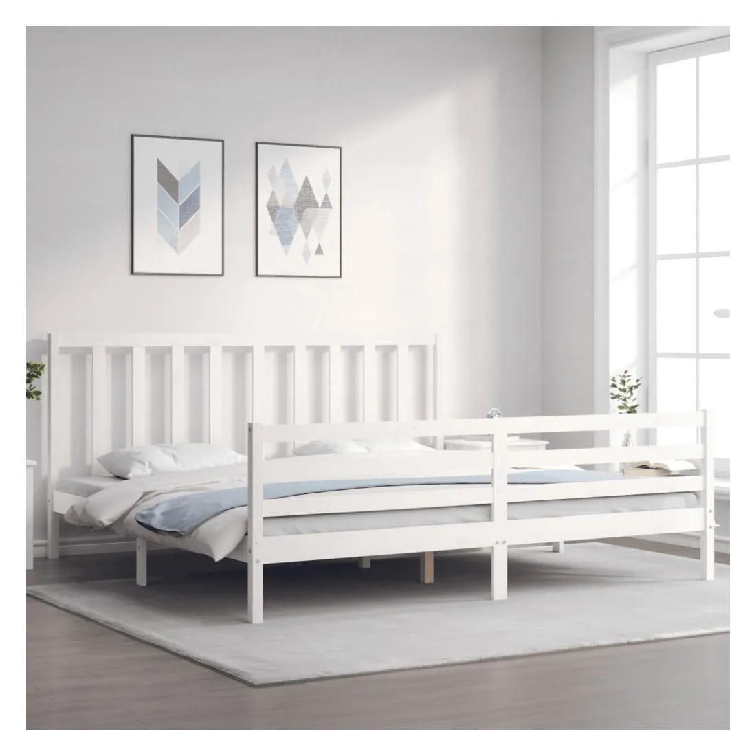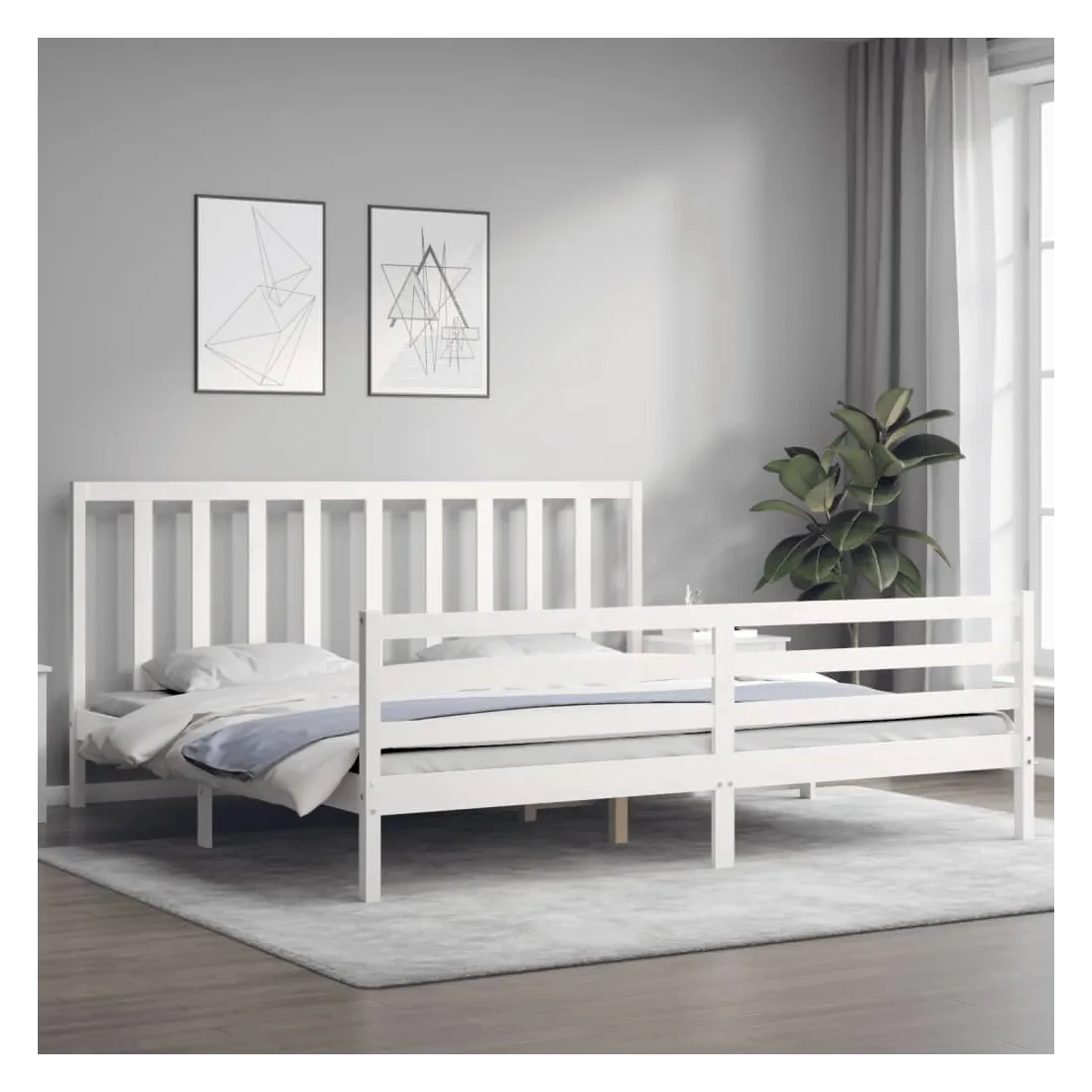 Cadre de lit sans matelas blanc 200x200 cm bois massif de pin
